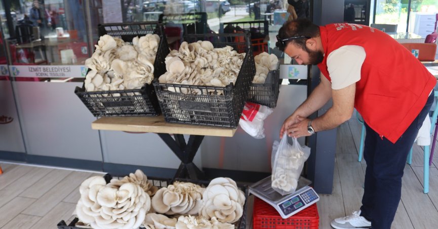 Üreten Belediye İzmit Belediyesi, kendi mantar üretim tesisinde yetiştirdiği istiridye mantarlarını uygun fiyata halkla ulaştırmaya devam ediyor