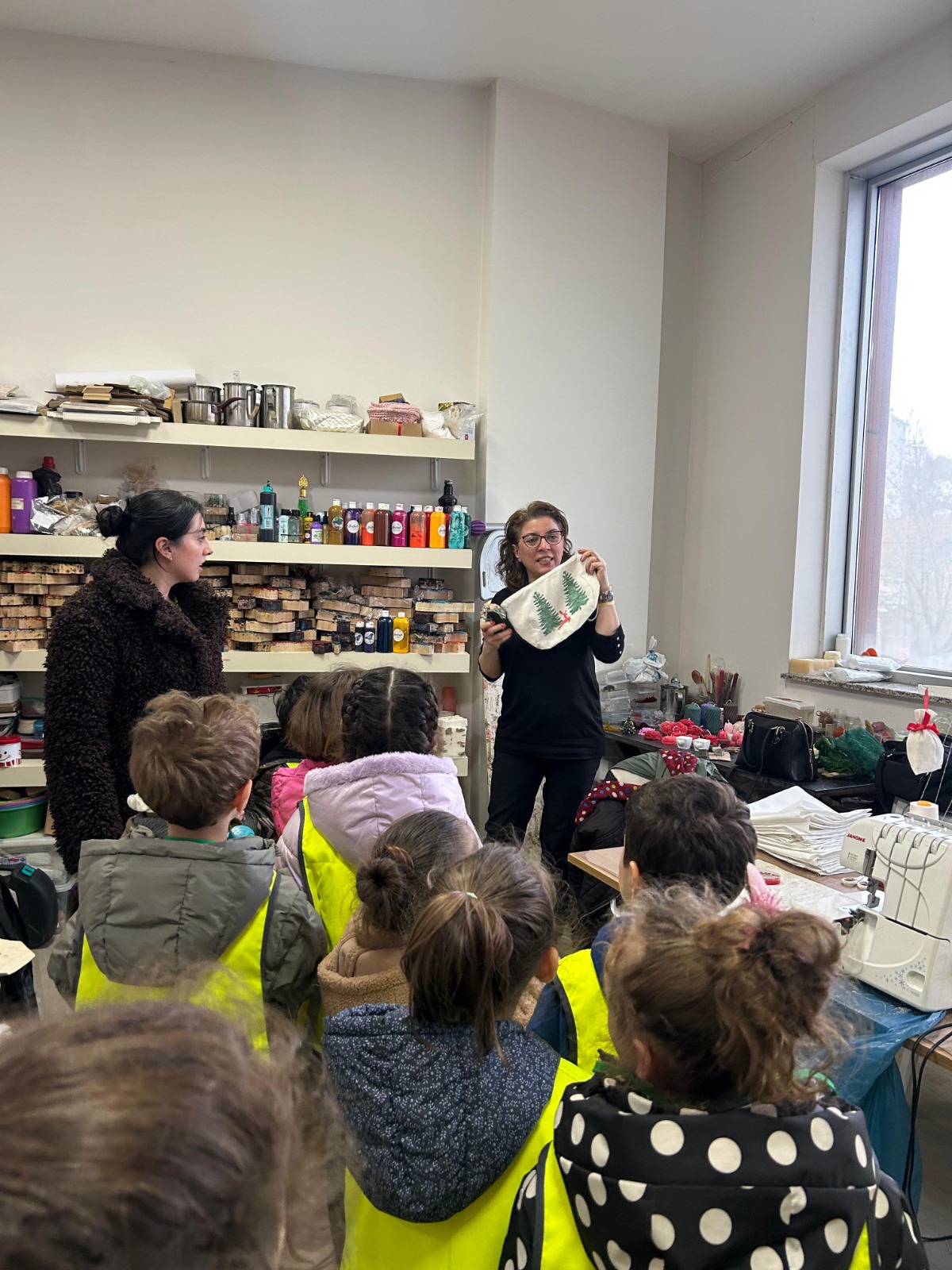 Ayrıca geri dönüşümün önemi üzerine gerçekleştirilen sohbetle çocuklarda çevre bilinci oluşturulması hedeflendi. Program kapsamında öğrenciler, İZGİM bünyesinde Türk el sanatları alanında üretim yapan girişimci kadınların atölyelerini gezerek yapılan çalışmalar ve üretilen ürünler hakkında bilgi aldı.