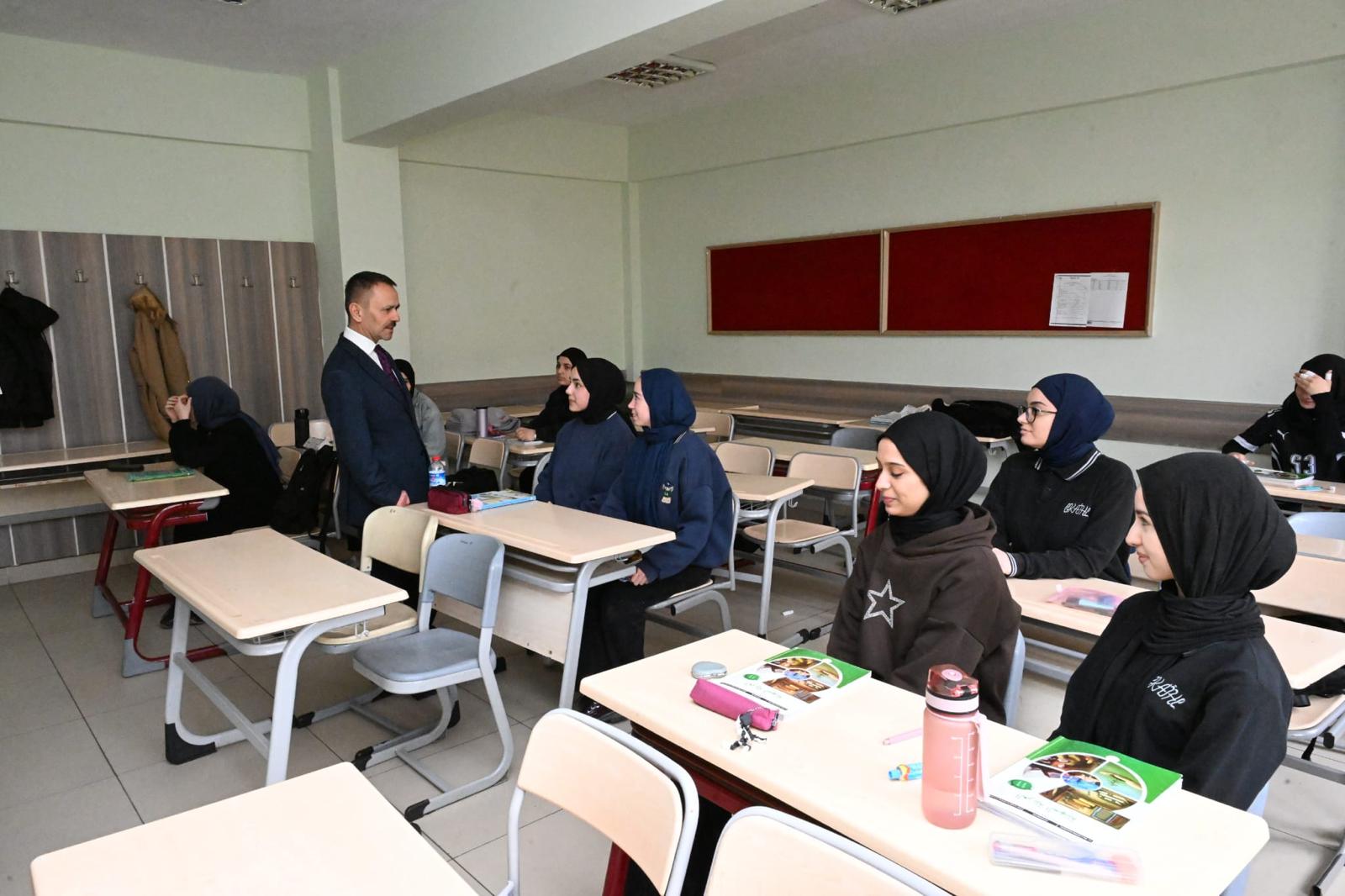 Sınıfları gezerek öğretmen ve öğrencilerle de bir araya gelen Vali İlhami Aktaş, güzel temennilerini ve başarı dileklerini iletti.