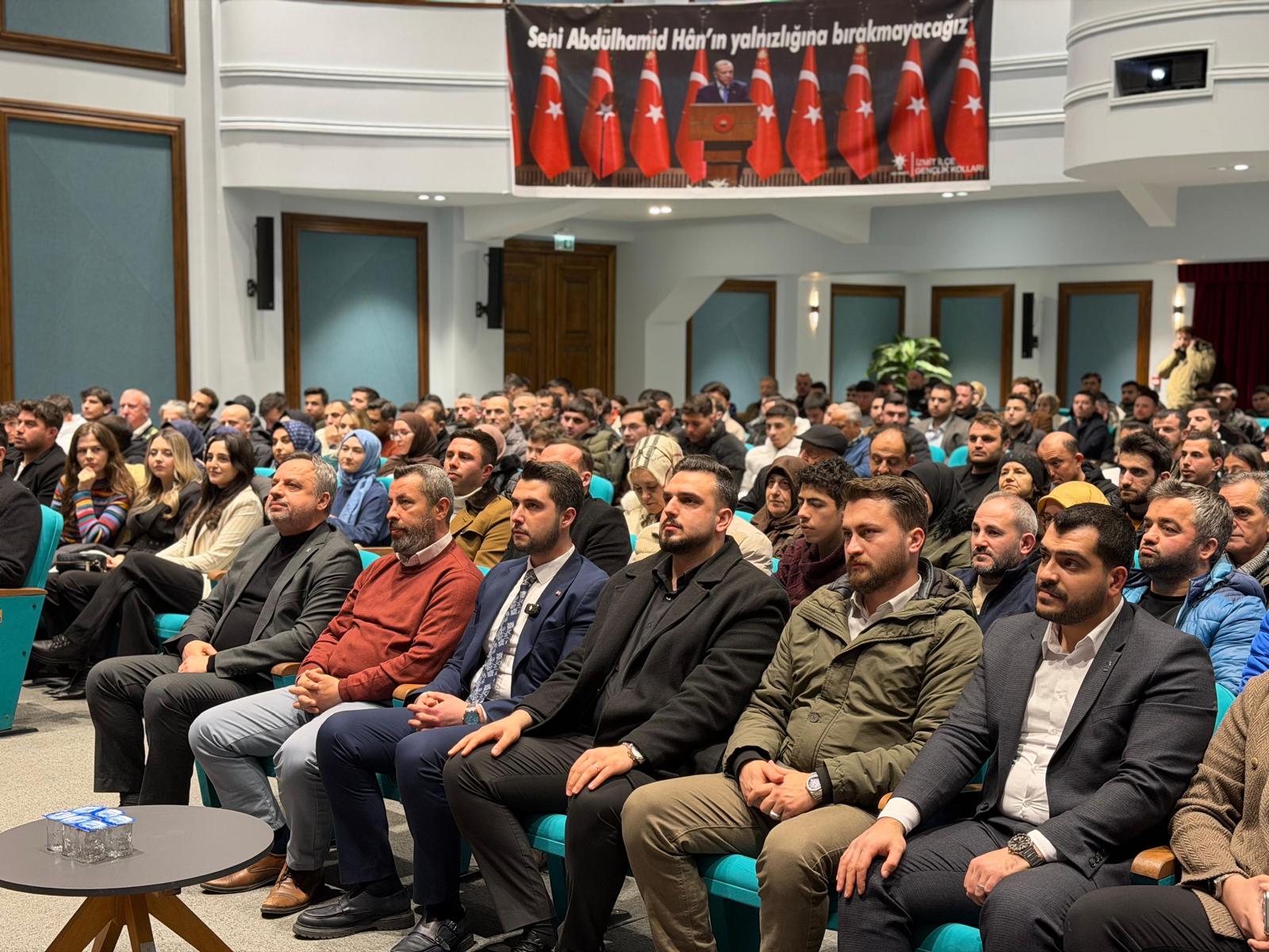 AK Parti İzmit Gençlik Kolları’nın düzenlediği “Abdülhamid’i Anlamak” programında, Ulu Hakan Sultan II. Abdülhamid Han’ın feraseti, devlet aklı ve medeniyet vizyonu gençlerin yoğun katılımıyla ele alındı; tarih şuuru ile geleceğin vizyonu aynı salonda buluştu.