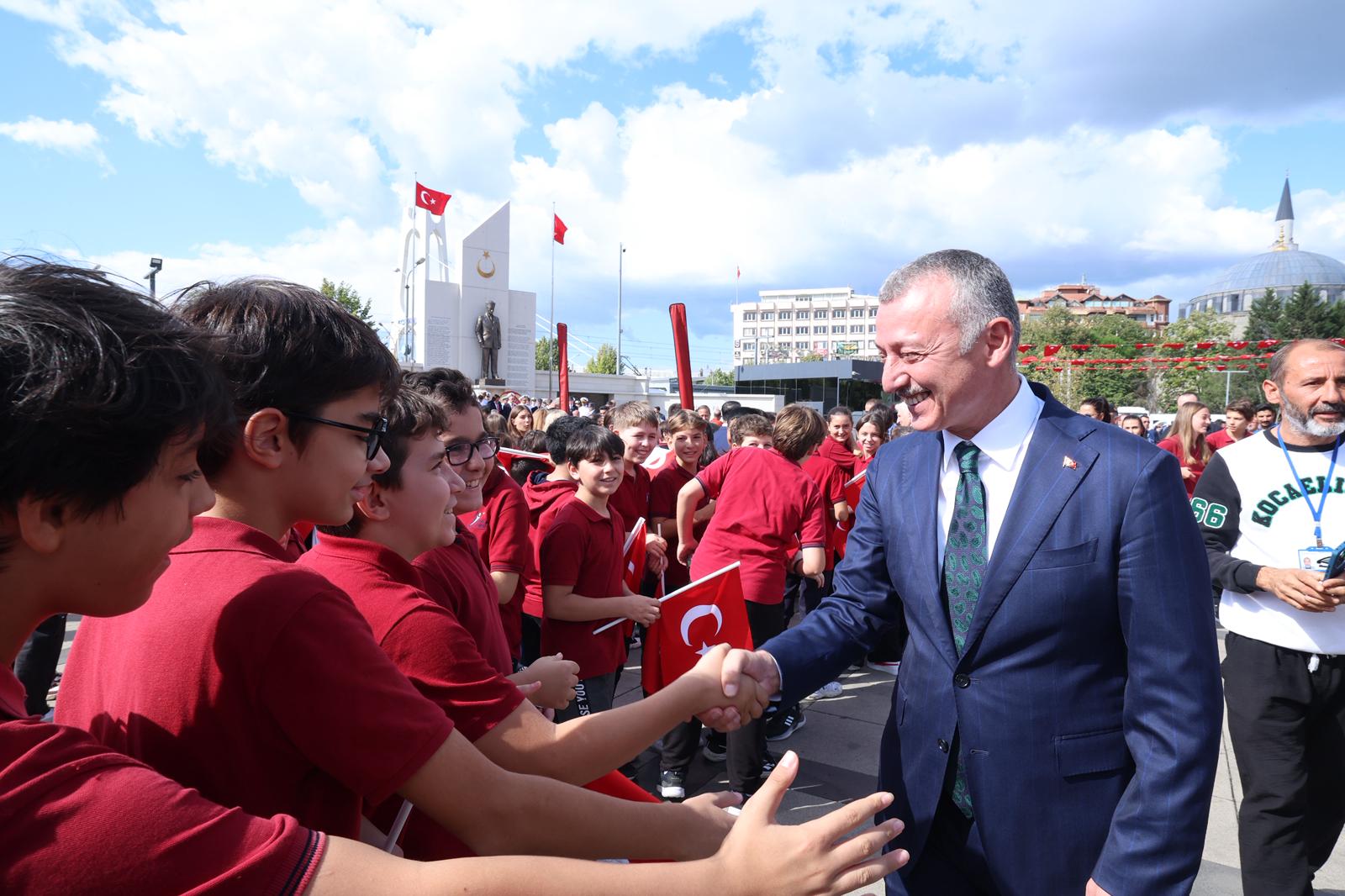 Yürüyüşe Büyükşehir Belediyesi Bando Takımı da eşlik etti. Öğrencilerin de yer aldığı kortej, bando ezgileriyle Kent Meydanı’na ulaştı. Burada Kocaeli Valiliği, Garnizon Komutanlığı, Büyükşehir Belediyesi ve Kocaeli Muharip Gaziler Derneği adına Atatürk Anıtı’na çelenkler sunuldu.