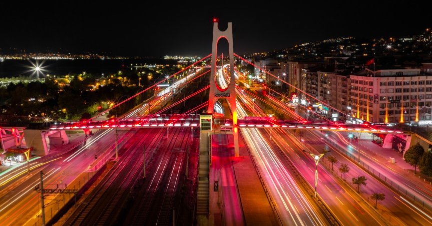 Kentin simgeleşmiş üst geçitleri, Türk bayrağının simgelediği kırmızı ve beyaz renklerle ışıklandırıldı.