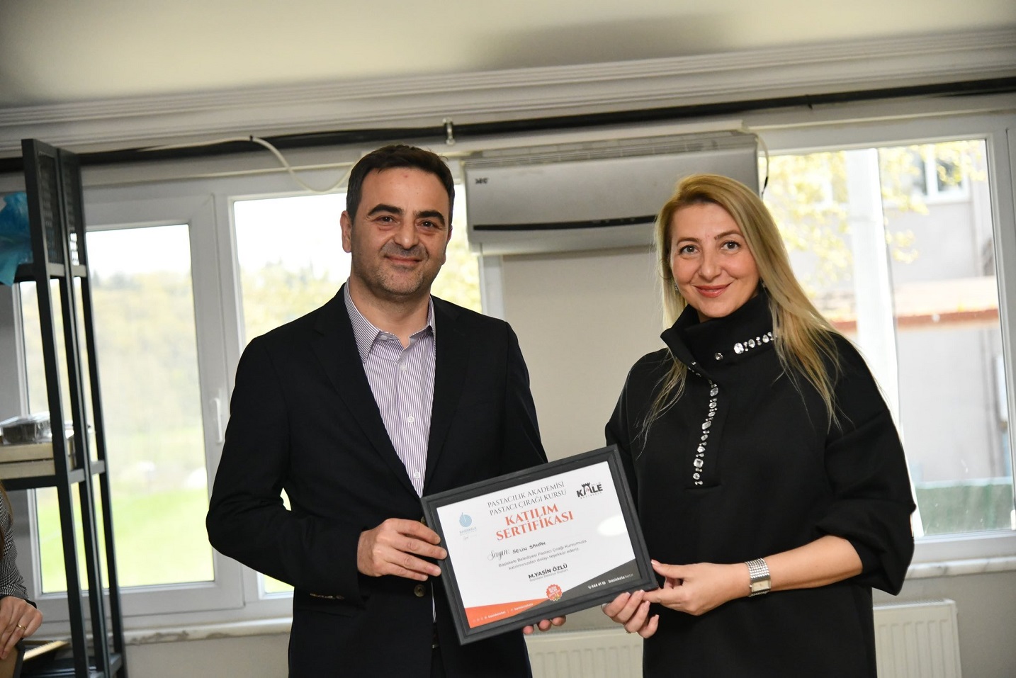 Başiskele Belediye Başkanı M. Yasin Özlü, Pastacılık Akademisi kapsamında düzenlenen Pastacı Çırağı Kursu’nu başarıyla tamamlayan kursiyerlere katılım sertifikalarını takdim etti.