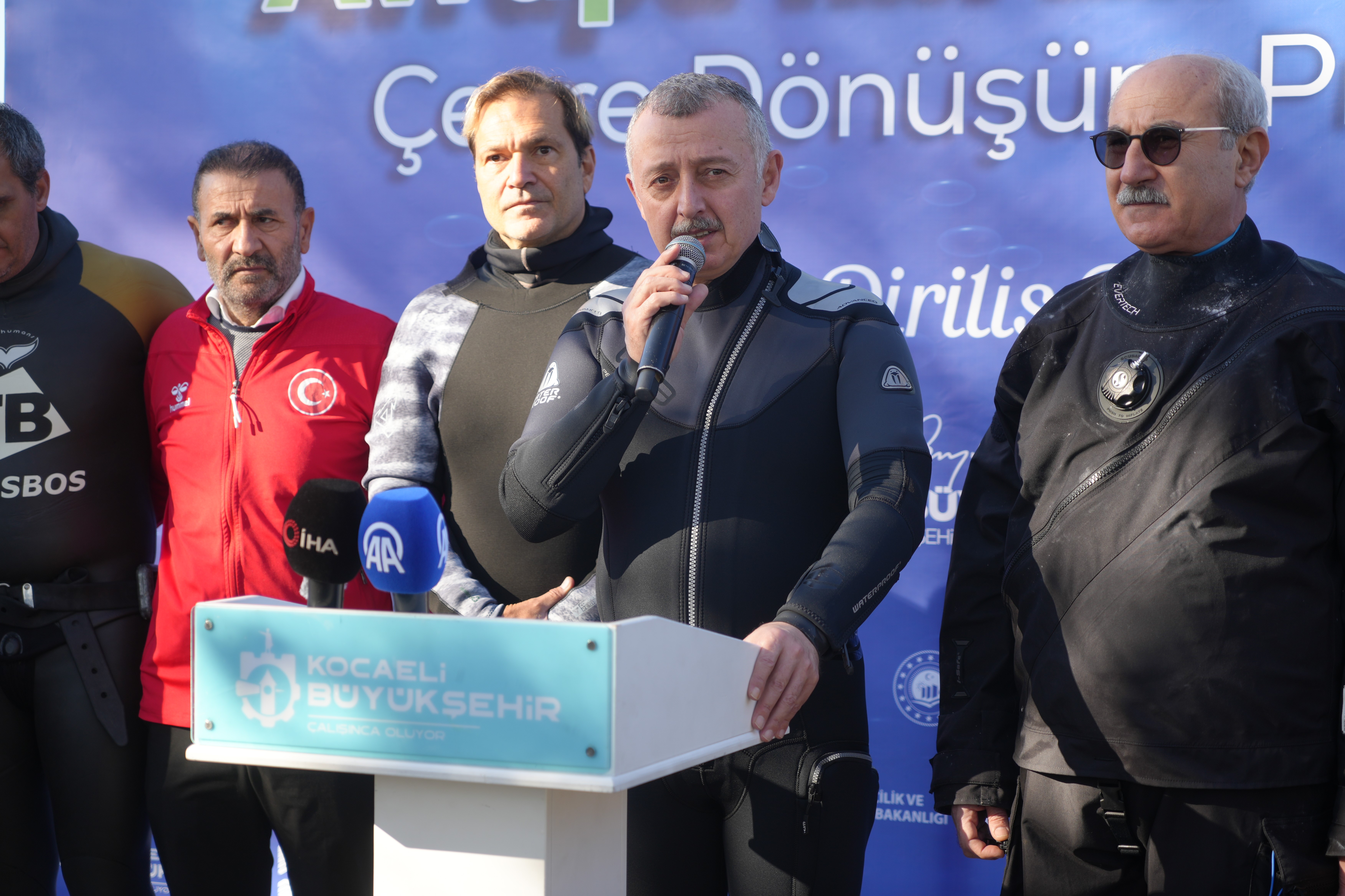 Kocaeli Büyükşehir Belediye Başkanı Tahir Büyükakın, Avrupa'nın en büyük çevre projesinde gelinen noktayı görmek için dalgıç kıyafetlerini giydi ve İzmit Körfezi'nin derinliklerine indi. Bir zamanlar balçıkla kaplı olan zeminde pisi balıkları ve deniz şakayıklarını gören Büyükakın, "Yakın zamanda burada çok daha farklı şeyler görmeye başlayacağız" dedi.