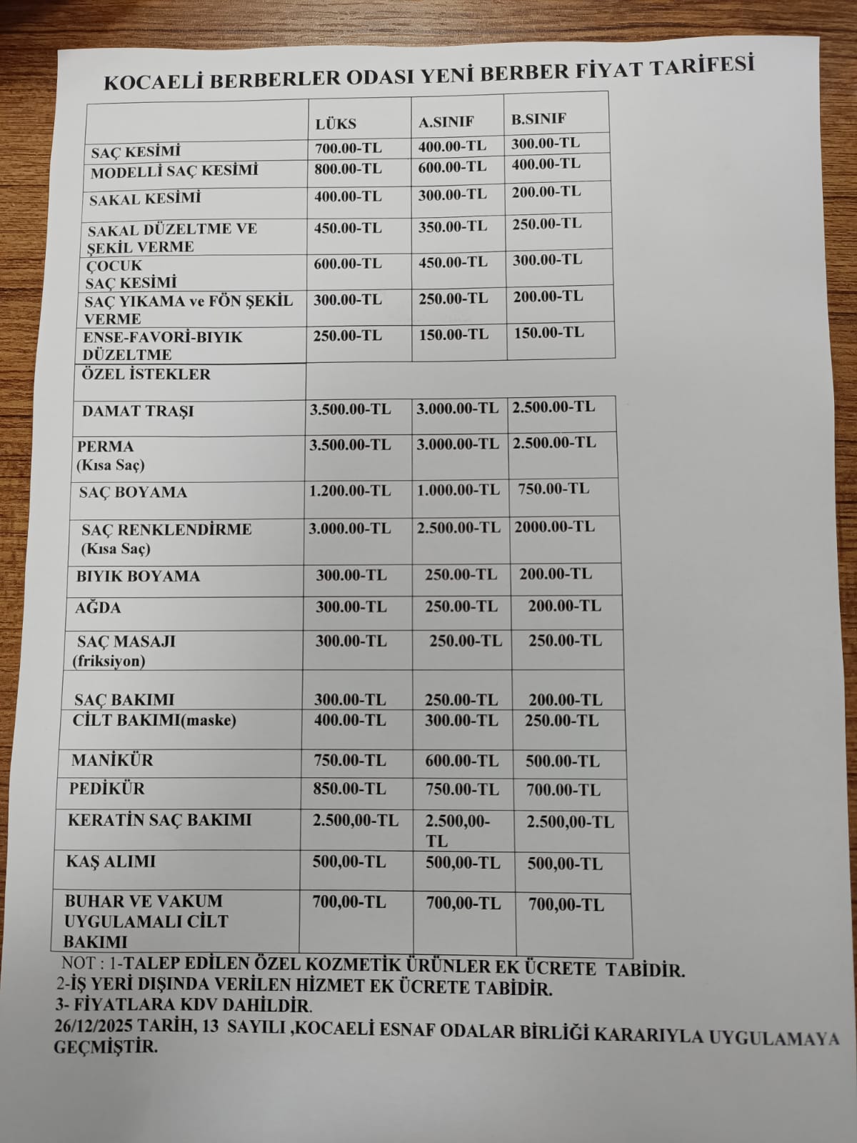 Fiyatların keyfi şekilde belirlenmediğinin altını çizen Bozkurt, her tarife döneminde TÜİK verileri, kira artışları, elektrik, su, sarf malzemeleri, SGK ve BAĞ-KUR primleri gibi giderlerin dikkate alındığını söyledi. Hazırlanan maliyet tablosunun Kocaeli Esnaf Odaları Birliği’ne sunulduğunu ve onay sonrası yürürlüğe girdiğini belirtti.