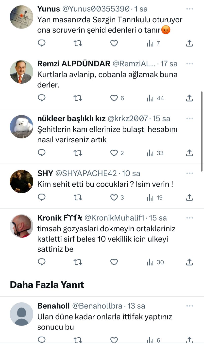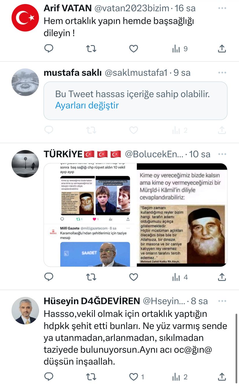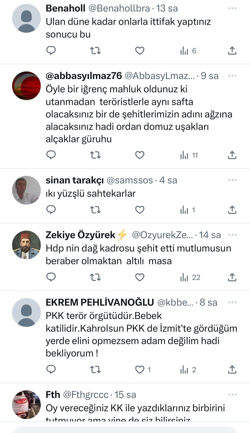 Bitmez’in bu iki yüzlü paylaşımı sonrası ise HDP ile ittifak halinde olup şehitlerimiz için taziye mesajı yayımlanmasına vatandaşlardan tepki yorumları gelmeye başladı. Durumu Kurt ile avlanıp çoban ile ağlamaya benzeten vatandaşların tepkileri ise şu şekilde