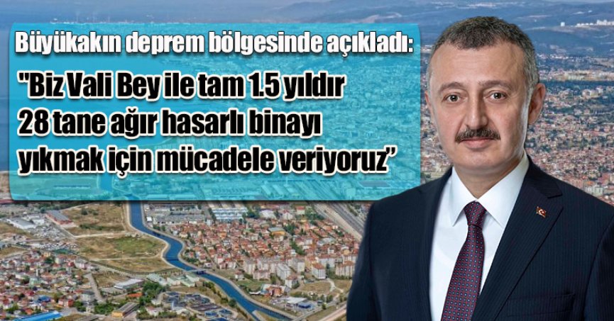 Büyükakın deprem bölgesinde açıkladı: "Biz Vali Bey ile tam 1.5 yıldır 28 tane ağır hasarlı binanın tamamını yıkmak için mücadele veriyoruz, hala 8 tanesi duruyor."
