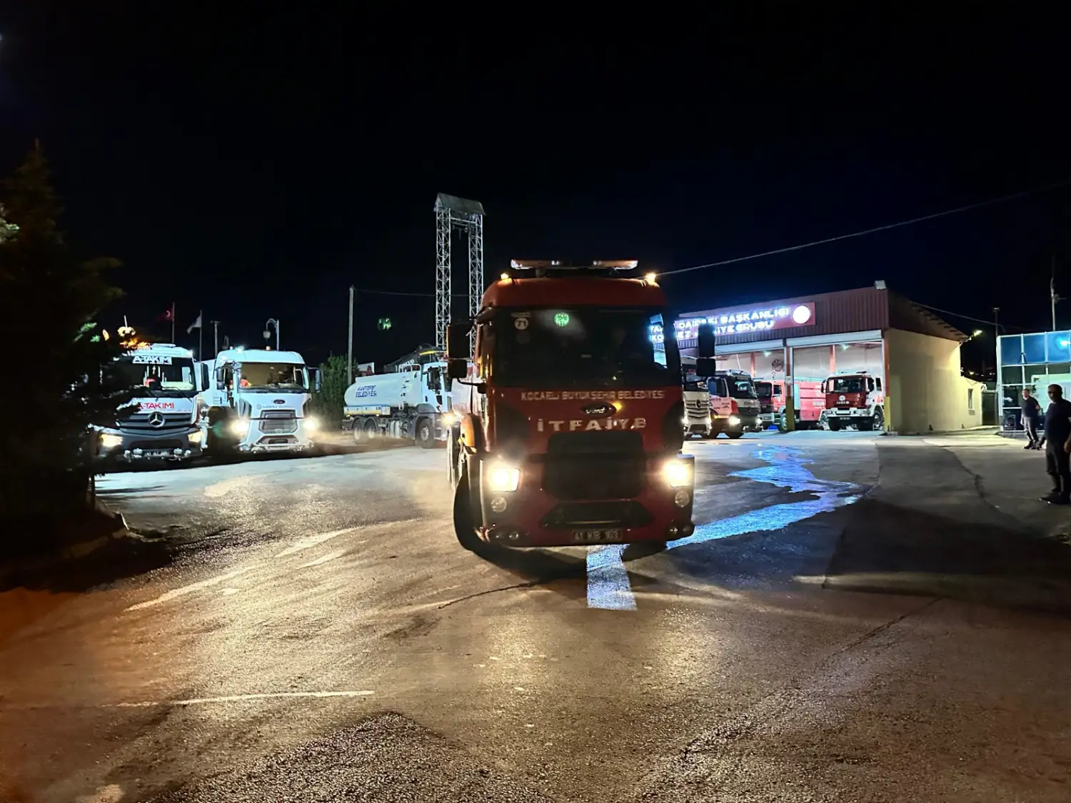 Kocaeli Büyükşehir Belediyesi Yol ve Bakım Dairesi Başkanlığı bünyesindeki A Takımı ekipleri; arazözler, lovbet taşıyıcı, ekskavatör, dozer ve 4x4 öncü araçlardan oluşan konvoyla yangın bölgesine doğru hareket etti. İlçe belediyelerinden de takviye güçlerin destek verdiği ekip, Körfez’de toplandı ve gece yarısında yangın bölgesine harekete geçti. Aynı zamanda, Kocaeli Büyükşehir Belediyesi İtfaiye Daire Başkanlığı’na bağlı yangın söndürme ekipleri de araç ve personel desteğiyle bölgeye sevk edildi.