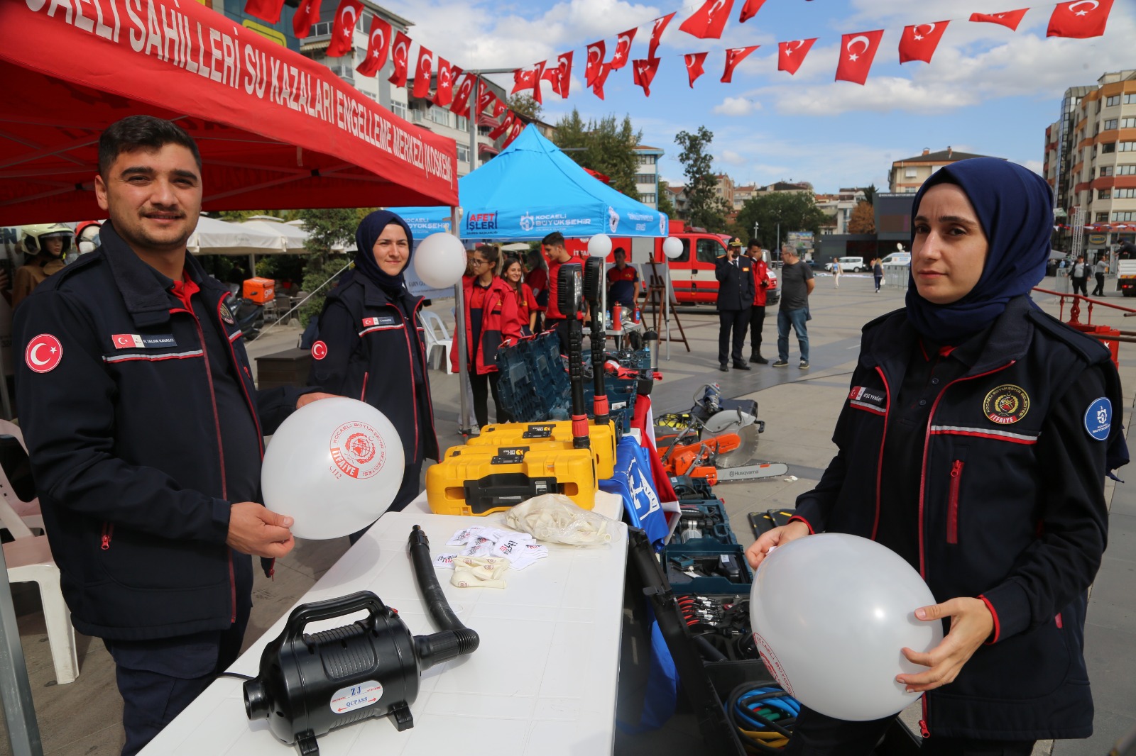 Etkinlikler kapsamında İzmit Kent Meydanı’nda kurulan stantlarda itfaiyenin dünden bugüne kullandığı teçhizatlar görücüye çıktı. 25 Eylül-01 Ekim tarihleri arasında kutlanan İtfaiye Haftası’na özel yeni ekipmanların sergilendiği etkinlikte, itfaiyenin su altı ve üstü arama kurtarma ekibinin de teçhizatları tanıtıldı. İtfaiye Dairesi Başkanı Ömer İslamoğlu da stantları gezerek vatandaşları bilgilendirdi.