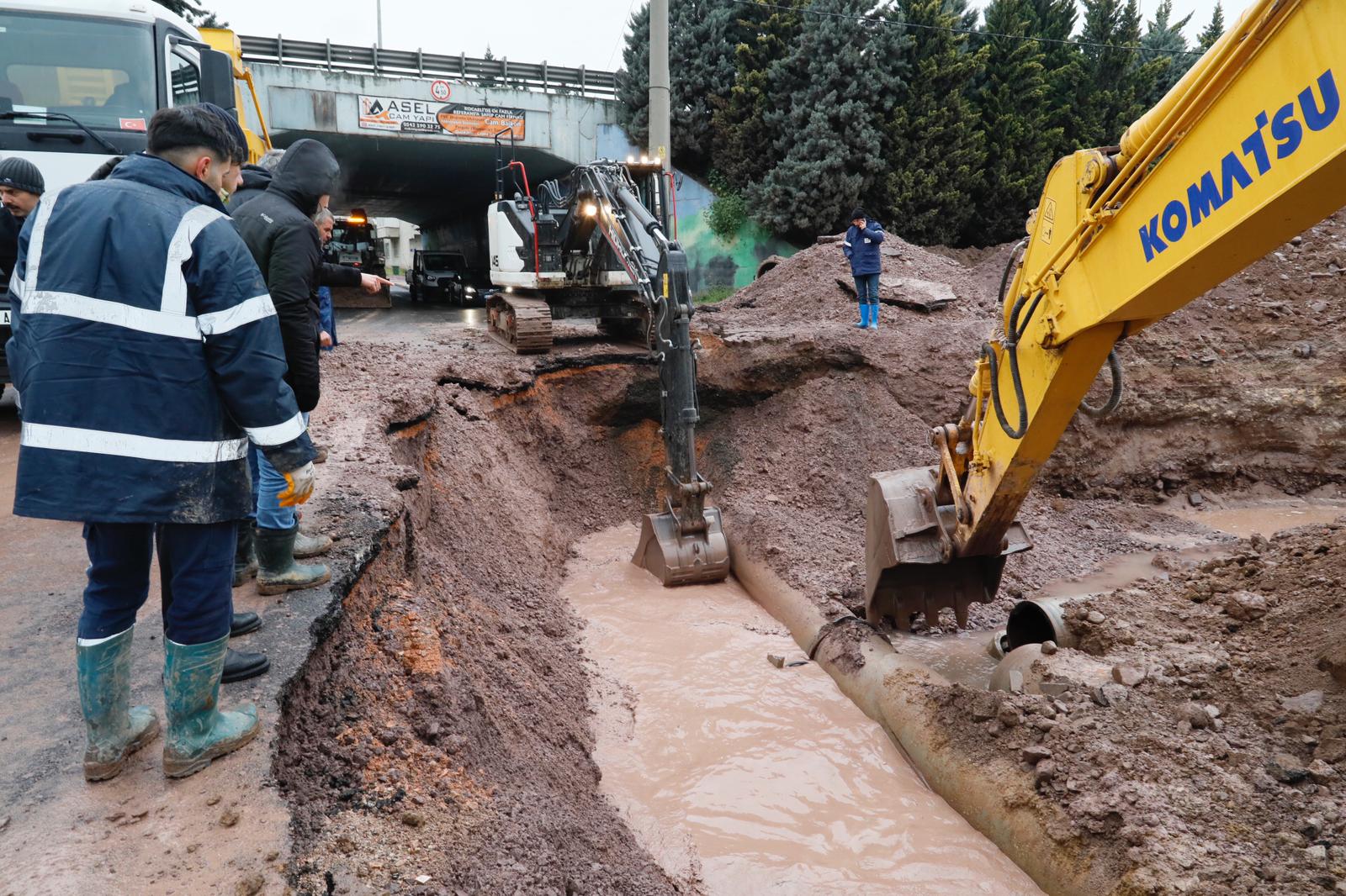 İSU tarafından Körfez Yeni Yalı Mahallesi'nde yeni yapılan içme suyu hattı patlamasının ardından Körfez Belediye Başkanı Şener Söğüt ve İSU Genel Müdürü Ali Sağlık çalışmaları yerinde inceledi.Söğüt;"Bugün saat: 22.00'a kadar su verilemeyecektir.” açıklamasında bulundu.