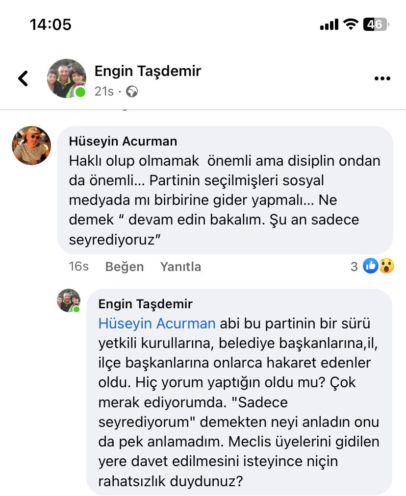 Taşdemir’in açıklamasına destek olanlar kadar eleştirilenler de oldu. CHP Kocaeli eski İl Başkan Yardımcısı Hüseyin Acurman paylaşımın altına yaptığı yorumunda “Haklı olup olmamak önemli ama disiplin ondan da önemli… Partinin seçilmişleri sosyal medyada mı birbirine gider yapmalı… Ne demek “ devam edin bakalım. Şu an sadece seyrediyoruz” ifadelerini kullandı.