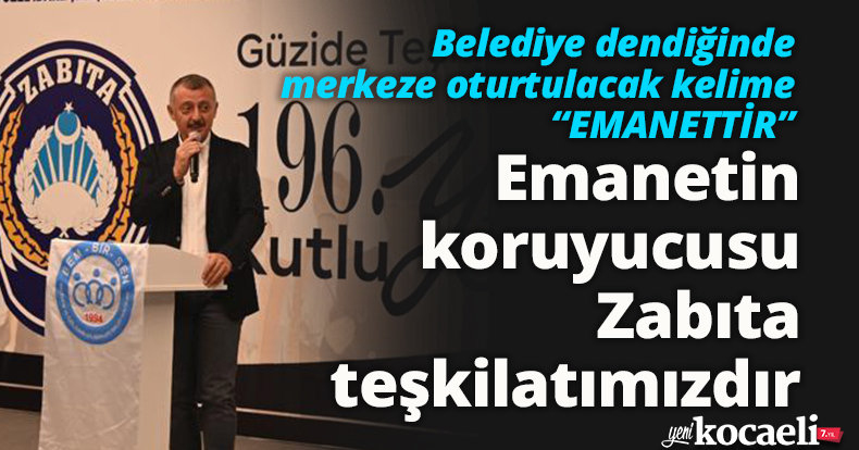Ardından konuşmasını yapan, Kocaeli Büyükşehir Belediyesi Başkanı Doç. Dr. Tahir Büyükakın; ” Belediye ile ilgili en önemli kelime nedir? Belediye dendiğinde düşünce olarak merkeze oturtulacak kelime “EMANETTİR” derim. Emanet çok ağır bir yüktür. Belediye Başkanı adına emanetin koruyucusu kimdir? Zabıta teşkilatımızdır. Şehirde her emanetin koruyucusu sizlersiniz. Emaneti Muhafaza eden Zabıta çalışanlarımızın haftasını kutluyorum.” İfadelerinde bulundu.