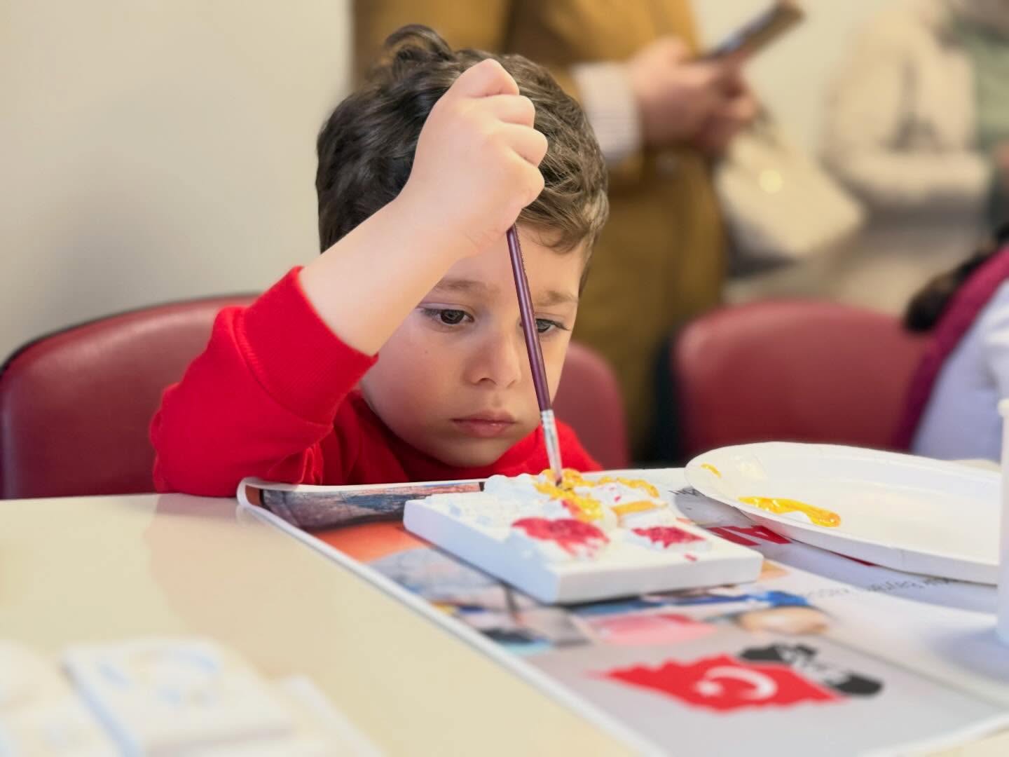 Gölcük Belediyesi; 23 Nisan Ulusal Egemenlik ve Çocuk Bayramı etkinlikleri kapsamında Belediyesi Mehmet Akif Ersoy Kültür Merkezi’nde de çocuklara özel program düzenlendi. “Çocuklar İçin Sanat Dolu Bir Gün” sloganı ile düzenlenen taş tozu obje boyama atölyesine katılan 4-8 yaş arası çocuklar, eğitmen Pınar Turaç Hatipoğlu eşliğinde birbirinden güzel eserler ortaya çıkardı. Etkinliğe katılan Gölcük Belediye Başkan Yardımcısı İbrahim Uzuner, çocukların el becerilerini geliştirerek eğlendiği anlara ortak oldu.