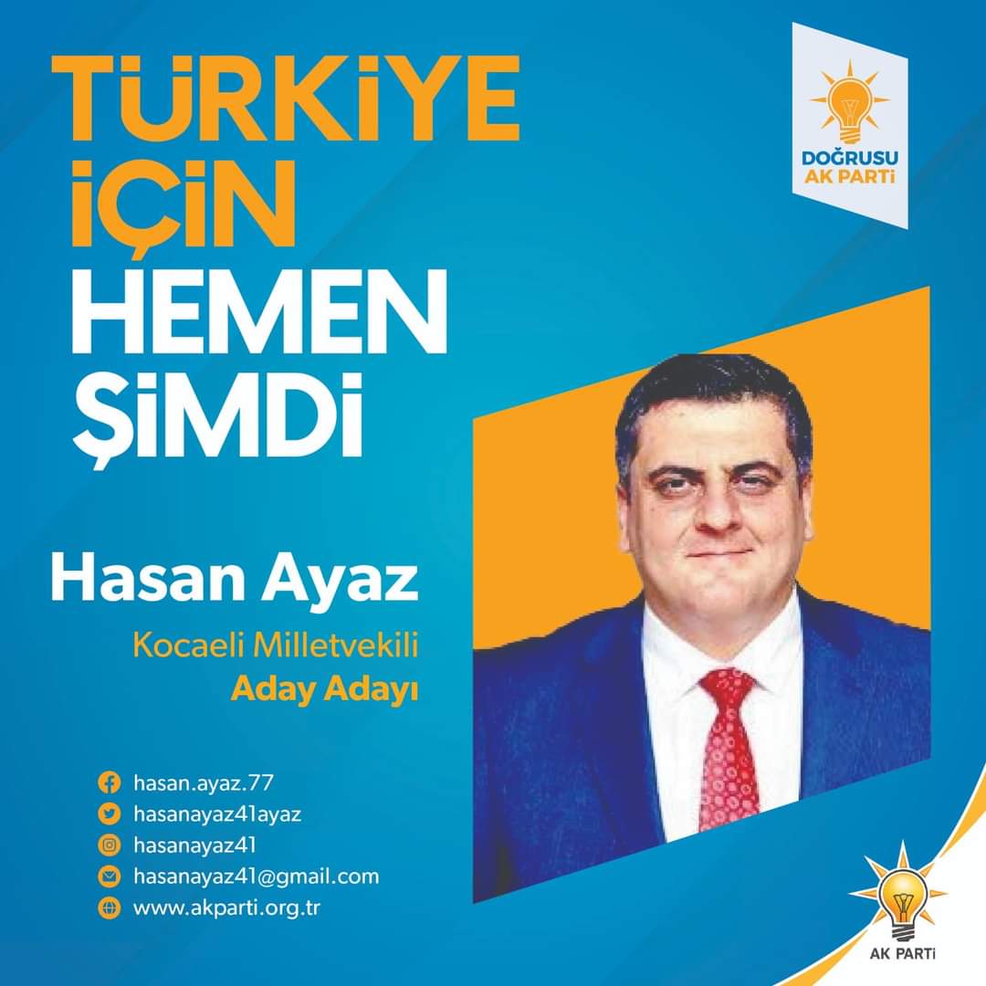 Şu an Büyükşehir Belediyesi İzmit Koordinatörü görevini yürüten ve eski AK Parti İzmit İlçe Başkanlığı görevini yapan Hasan Ayaz, AK Parti Kocaeli Milletvekili aday adaylığı için koordinatörlük görevinden istifa etti. Ayaz istifasını sosyal medya hesabından duyurarak, “Değerli Dostlar! 14 Mayıs 2023 tarihinde yapılacak olan Genel Seçimlerde Aday Adayı olmak için Kocaeli Büyükşehir Belediyesi Başkan Koordinatörlüğü görevinden istifa ettik. Rabbim çıktığımız yolda bizleri utandırmasın” ifadelerine yer verdi.