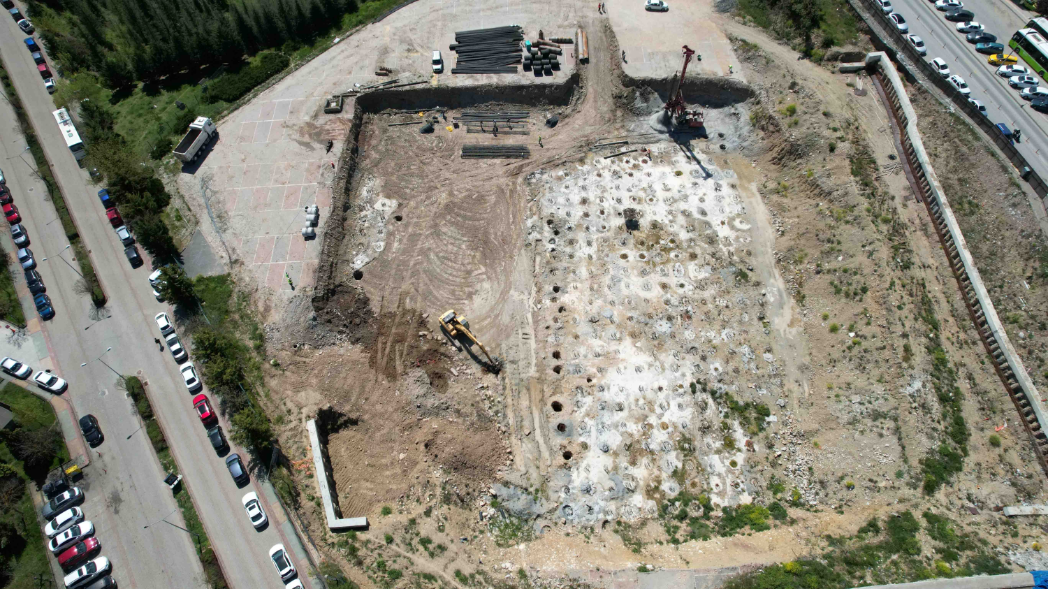 Zemin iyileştirme çalışmaları kapsamında 827 adet fore kazık ile temel güçlendirme işlemleri yapılırken, şu ana kadar 289 kazık tamamlandı. Temel sistemi radye temel, çatı ise çelik oturtma sistemli olacak. Üst yapı, patina bakır çatı kaplamasıyla estetik bir görünüme kavuşacak.