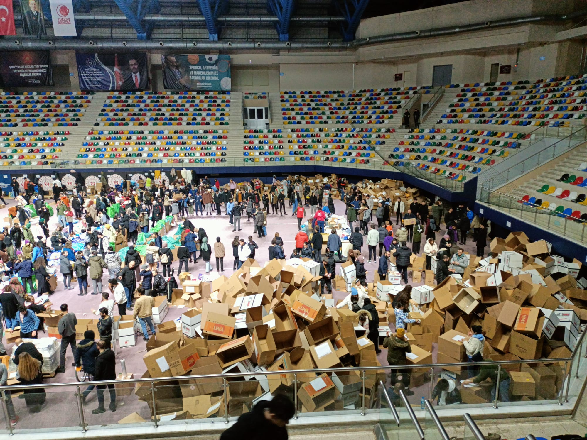Bunun yanında, depremin ilk anından itibaren Recep Topaloğlu Spor Salonu’nda profesyonel bir şekilde yürütülen operasyon ile gönüllü vatandaşlarımızın da katılımıyla bölgeye gönderilmek üzere gelen yardımlar tek tek ayrılıyor ve paketleniyor.Sosyal Yardımlaşma ve Dayanışma Vakfı koordinesinde gönüllü gençlerin büyük fedakarlıklarla yaptığı çalışmalar,büyük takdir topluyor. Özenle paketlenen yardımlar tırlara yuklenerek deprem bölgesine ulaşmak için yola çıkıyor.