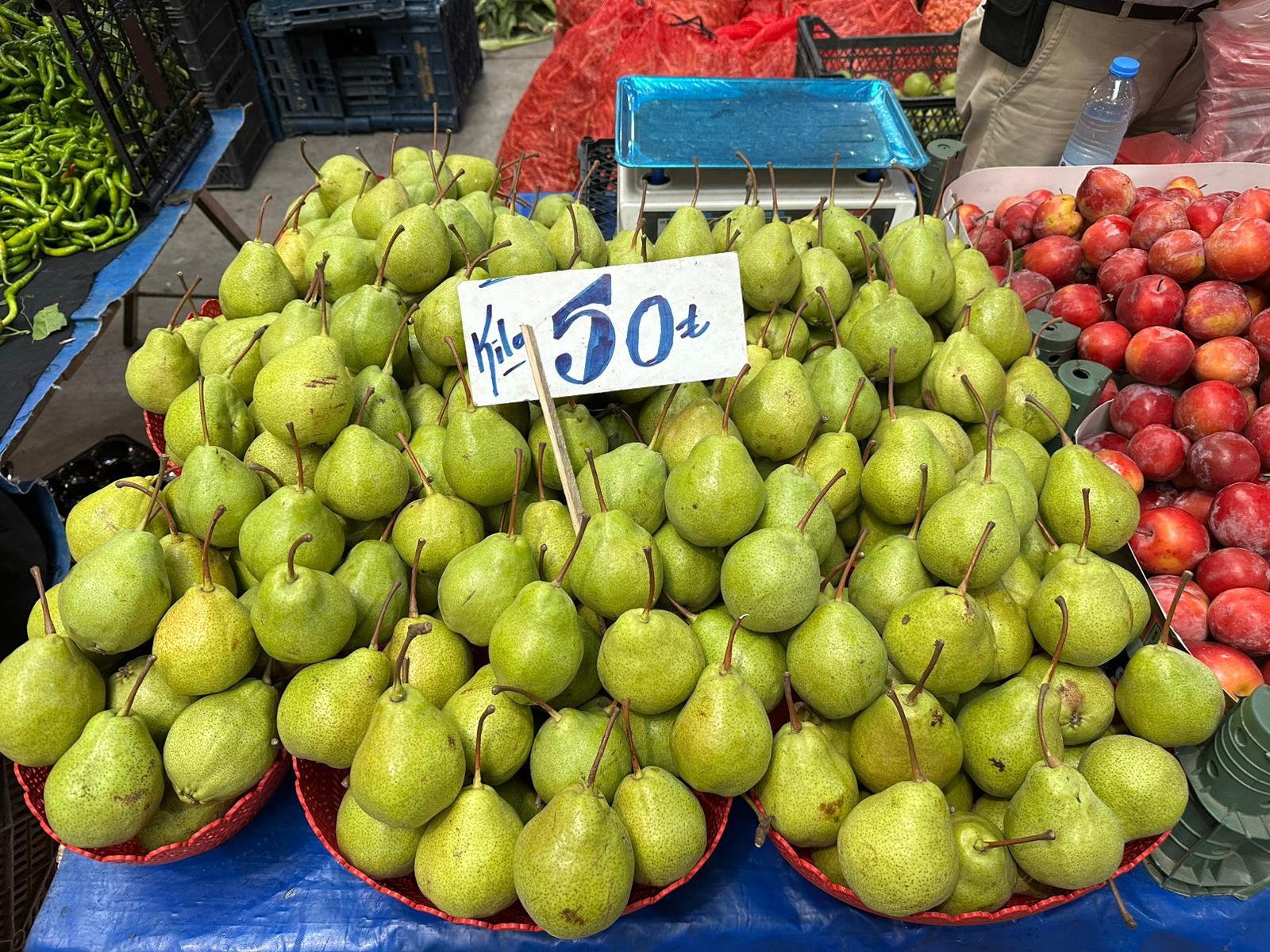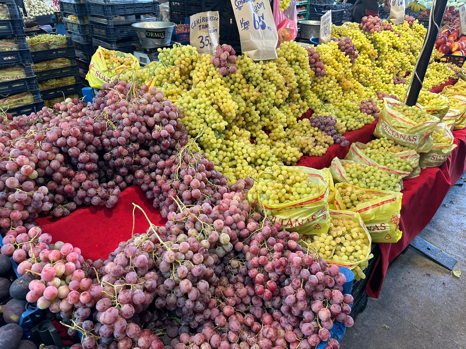 Üzüm çeşitlerinde artış dikkat çekti. Sarı üzüm 70, kırmızı üzüm 80 TL’den satıldı. Muz, şeftali ve mürdüm erik gibi meyveler 100 TL’ye alıcı bulurken, incir 150 TL ile pazarın en pahalı ürünü oldu. Mandalina 35, yeşil ve kırmızı elma ise 60 TL’den satışa sunuldu. Armut fiyatı ise 80 TL seviyesinde seyretti.