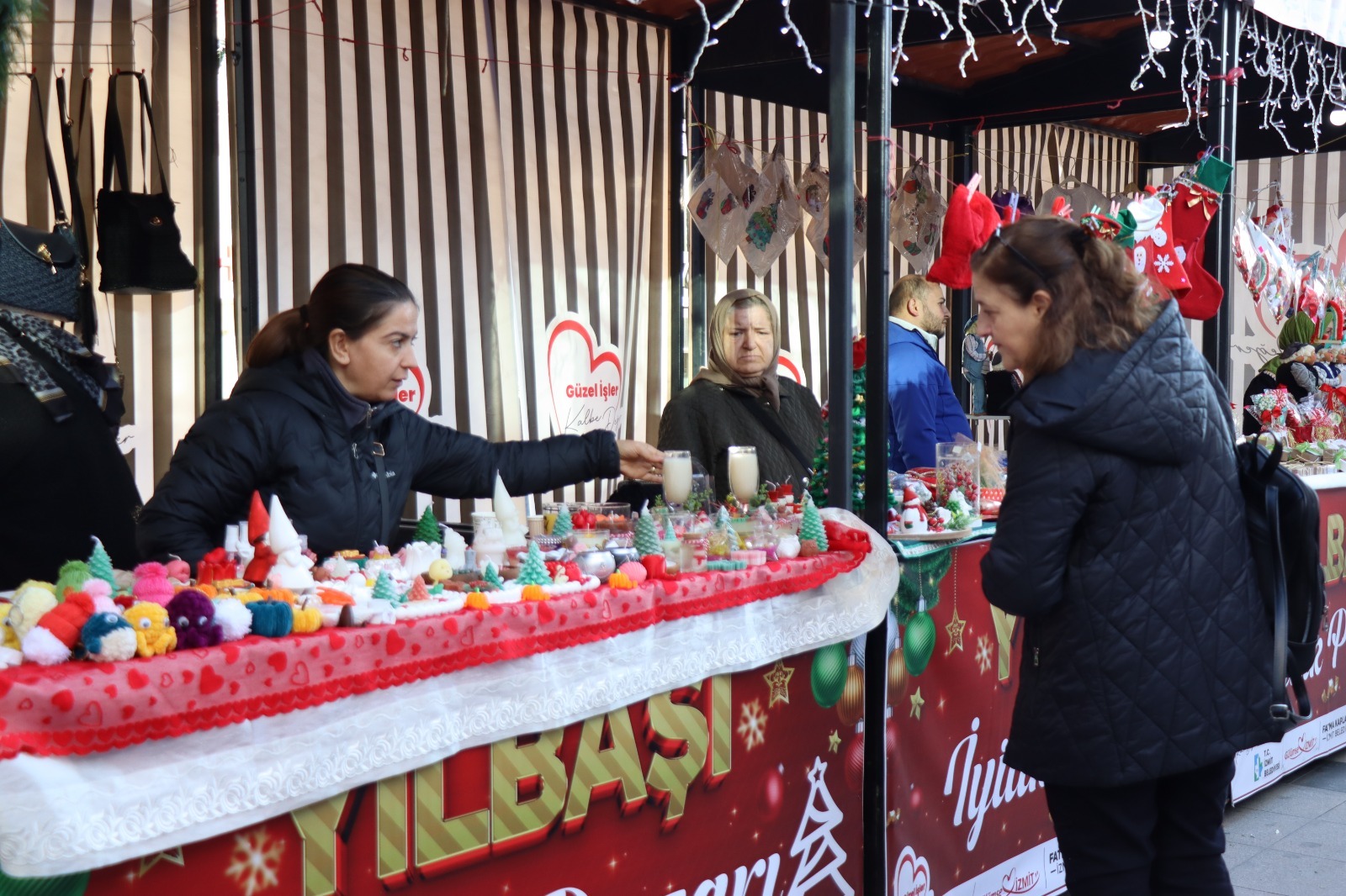 İzmit Belediyesi Yılbaşı İyilik Pazarı’nda girişimci kadınların ortaya koydukları el emeği ürünleri alıcılara ulaştırabilecek farklı satış kanalları imkanı sunuyor. Pazarda stant açma fırsatı bulan kadınlar el emeği ürünlerini satışa sunuyor. Yılbaşı süsleri, oyuncak bebekler, özel tasarım kupalar, mumlar ve takıların sunulduğu stantlarda özellikle yılbaşı temalı ürünler yoğun ilgi görüyor.