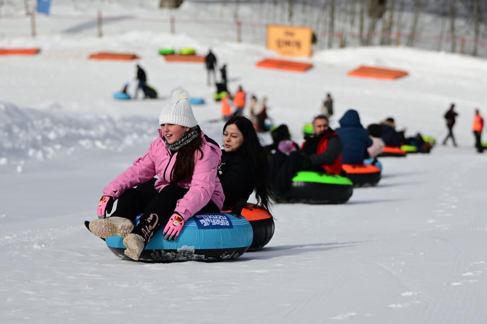 Beyaz karlarla kaplı Kuzuyayla’da coşku hız kesmeden devam ediyor. Büyükşehir’in Kuzuyayla projesinde yapımı tamamlanan kızak pisti KARFEST 2025 etkinliği ile vatandaşların kullanımına açıldı. Şişme botlar ve kızaklarla kızak pistinden kayan kış tutkunları hem eğleniyor hem de muhteşem anılar biriktiriyor. Aileler, arkadaşlar ve kış severler kızak pisti başta olmak üzere kurulan birçok etkinlik alanında gönüllerince eğleniyor. “Hedikli Kar Yürüyüşü”, “İglo Fotoğraf Çekim Alanı”, “Kar Motoru ile Safari”, “Kardan Adam Yarışması”, “Ödüllü Kar Topu Yarışması”, “Seyyar Salıncak”, “Kar Voleybolu” gibi kar temalı etkinliklere katılanlar KARFEST’in keyfini doyasıya yaşıyor.