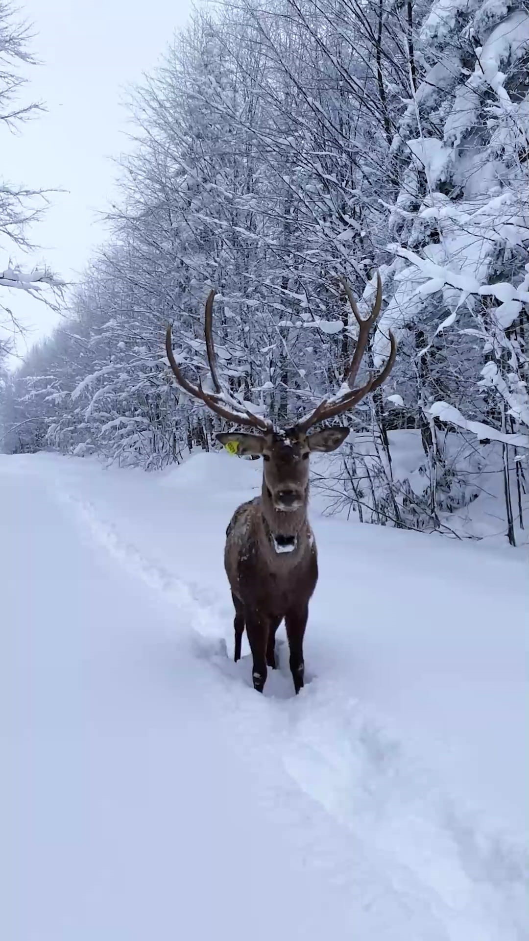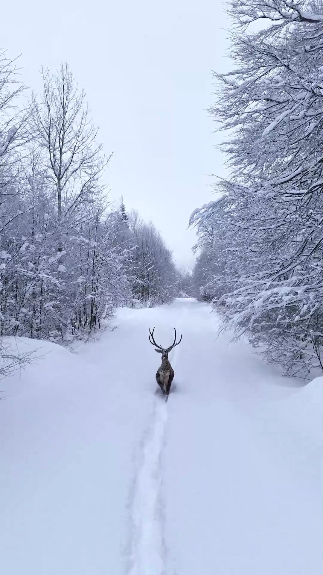 Beyaz örtüyle kaplanan doğada sakin adımlarla yürüyen kızıl geyiğin zarif görüntüsü, izleyenlere görsel bir şölen sundu. Karlar arasında süzülen geyiğin doğal hali, bölgedeki yaban hayatının geldiği noktayı gözler önüne serdi.