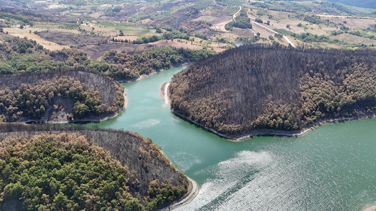 Yangın sonrası bölgede dron ile çekilen görüntüler, felaketin boyutunu gözler önüne serdi. Havadan kayda alınan görüntülerde, bir tarafta yeşilin, diğer tarafta siyahın tonlarının olduğu görüldü.