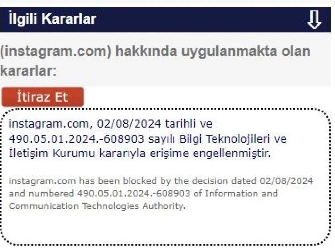 Kararın ardından Türkiye'den Instagram'a erişim sağlanamıyor.
