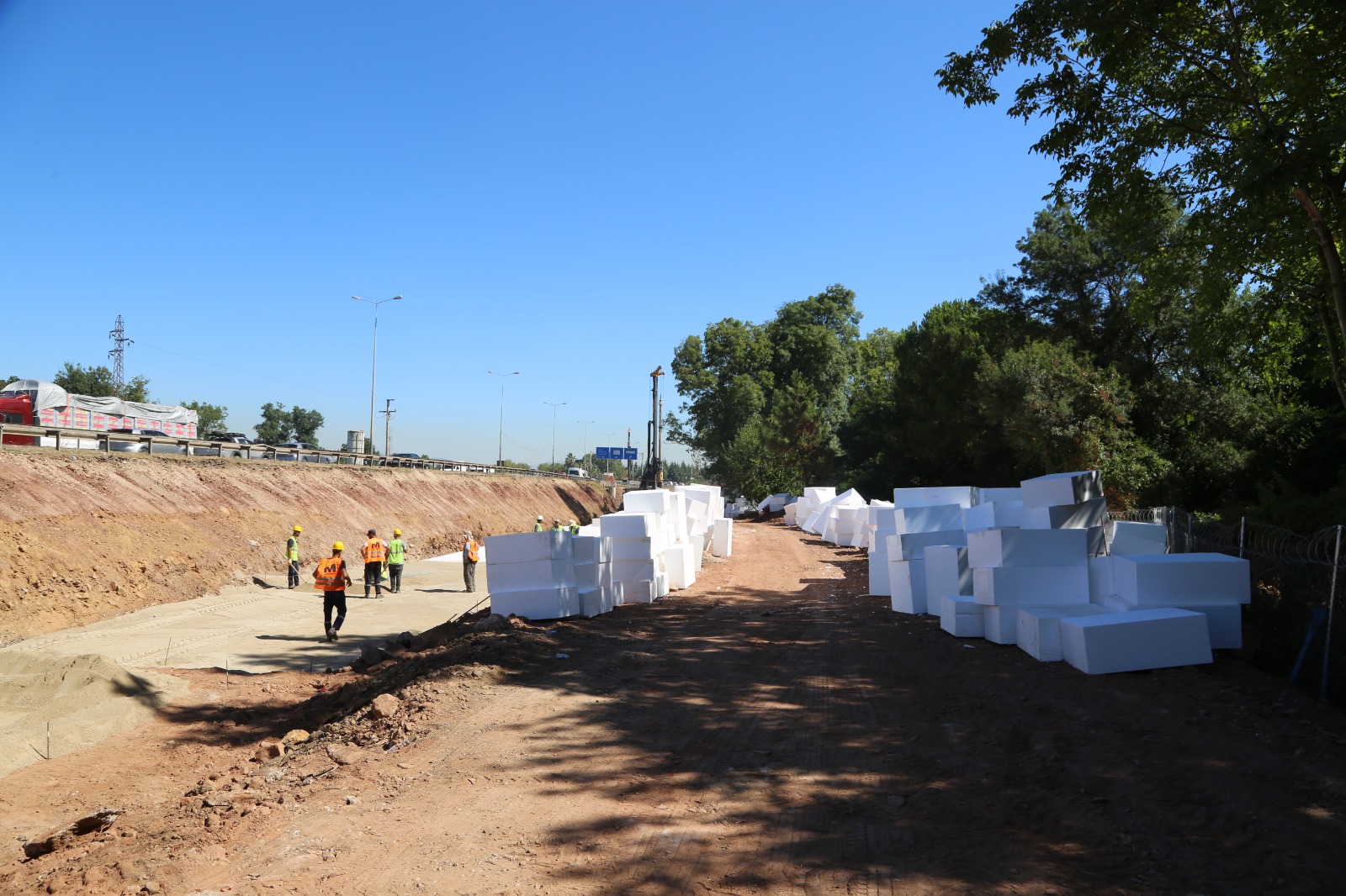 Uygulamanın ülkemizde sadece birkaç yerde olduğu ancak bu çaptaki bir büyüklükte, yani 100 bin metreküplük bir dolgunun ilk kez Büyükşehir Belediyesi’nin dev projesinde uygulandığı belirtildi. Geofoam blok yol dolgu sisteminde; projede belirtilen yoğunluklara göre imal edilen strafor EPS köpükler, yol kenarına uygun şekilde dizilecek. Ardından da üzeri asfaltla kaplanacak. Böylece yol genişletilecek.
