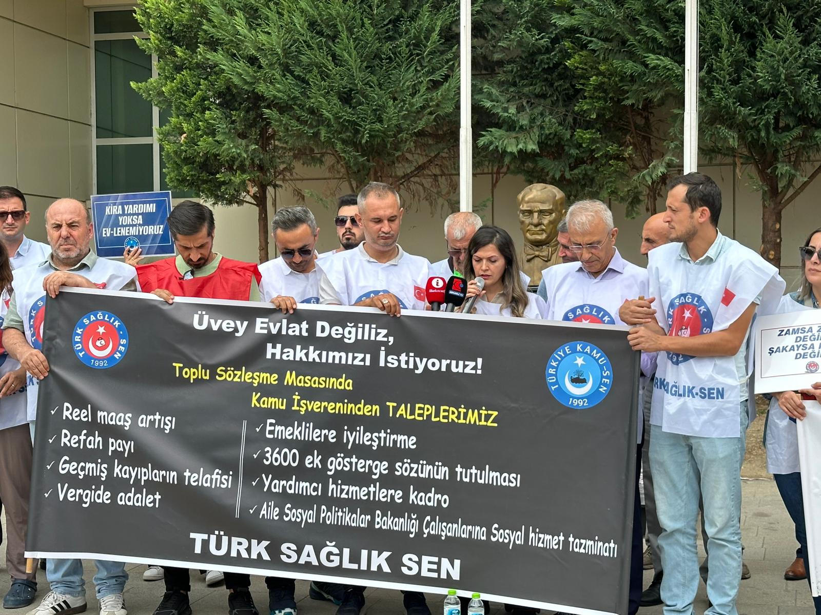 Türk Sağlık-Sen Kocaeli Şube Başkanı Ömer Çeker, 8. Dönem Toplu Sözleşme Görüşmeleri kapsamında hükümetin sunduğu teklifin çalışanların sorunlarına çözüm olmaktan uzak olduğunu söyledi. Çeker, 2026 yılı için yüzde 10+6, 2027 için yüzde 4+4 zam teklifinin ve 1000 TL taban aylık artışının “hayat pahalılığına karşı şaka gibi” olduğunu dile getirerek, “Bu oranlar mutfakta kaynayan tencereyi doldurmaz” ifadelerini kullandı.