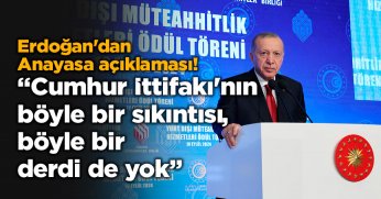 Cumhurbaşkanı Recep Tayyip Erdoğan, “Tekrar altını çizerek söylüyorum. Anayasanın ilk 4 maddesiyle ilgili bizim açımızdan herhangi bir tartışma yoktur. Özellikle Cumhur İttifakı'nın böyle bir sıkıntısı, böyle bir derdi de yoktur” dedi.
