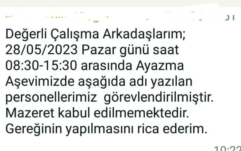 Seçim için bütün tuşlara basan Hürriyet’in hazırlanılacak kumanalar için belediye personellerini zorla görevlendirildiği iddialar arasında.Yine iddialara göre, Pazar günü gerçekleştirilecek seçim için yapılacak kumanya hazırlama çalışması Ayazma Aşevinde gerçekleştirilecek. Görevlendirilen personellerin mazeret kabul etmeksizin orada olması gerektiği aksi takdirde gelmeyenlerin, savunmalarının alınacağı da gelen mesajda personele bildirildiği görülüyor.
