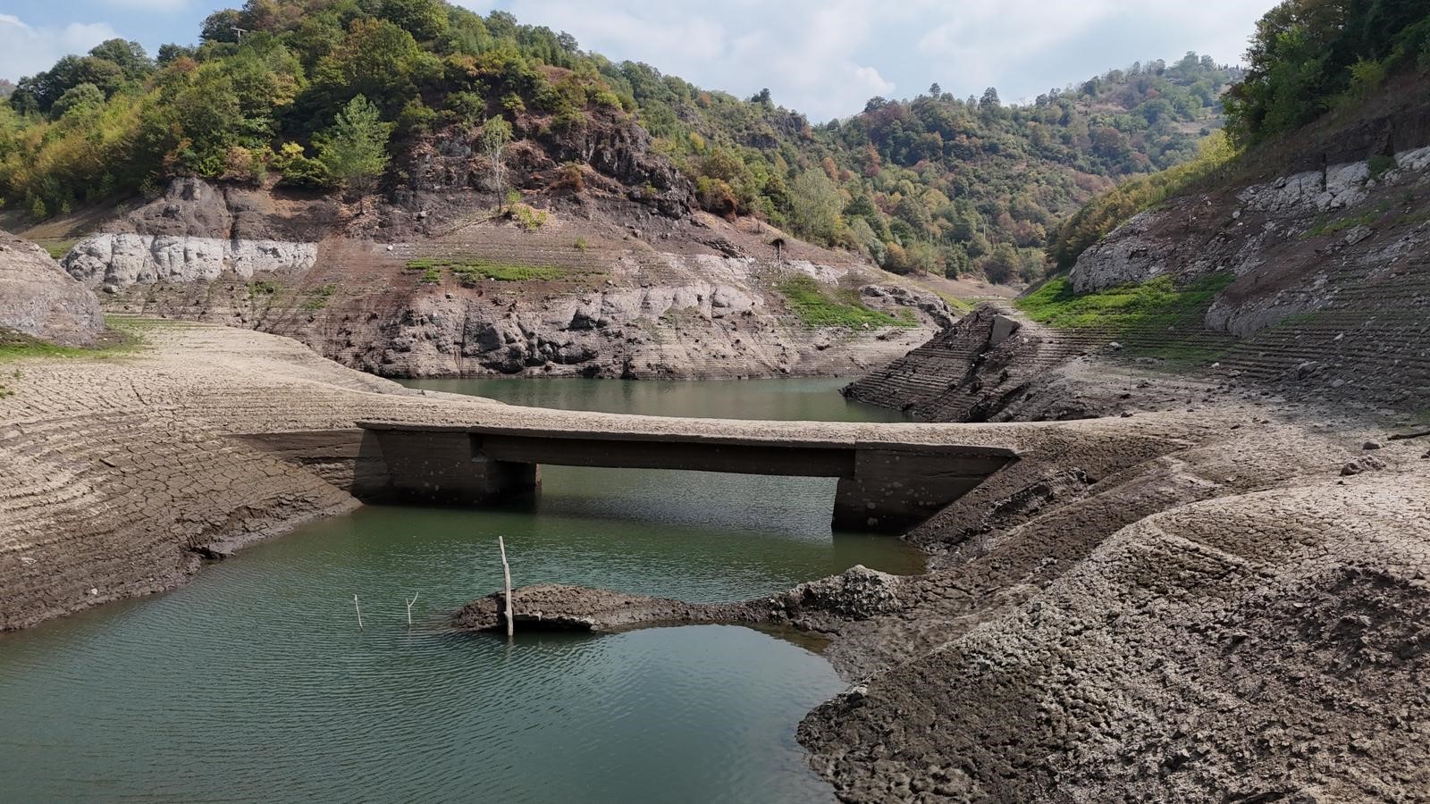 Su seviyesi yüzde 31'e düştü, eski köprü göründü