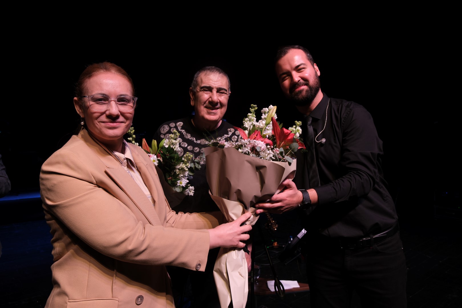 “Ustalara Saygı Metin Özülkü Konseri” cumartesi akşamı Kocaeli Kongre Merkezi Akçakoca Salon’da gerçekleştirildi. Vatandaşların yoğun ilgisi nedeniyle salon tıklım tıklım doldu. Konseri vatandaşlarla birlikte Kocaeli Büyükşehir Belediyesi Başkan Vekili Berna Abiş ve Kocaeli Valisi İlhami Aktaş’ın eşi Songül Aktaş da izledi. Büyükşehir Belediyesi Oda Orkestrası şefi Engin Şen moderatörlüğündeki konserde, sanatçı Metin Özülkü ile müzikli sohbet programı gerçekleştirildi. Sohbet aralarında Özülkü; Barış Manço, Cem Karaca, Özkan Uğur ve Kayahan şarkılarını seslendirdi. Bu anlamlı konserin sonunda Başkan Vekili Berna Abiş, sanatçı Metin Özülkü ve deneyimli müzik yönetmeni Alkın Toy’a çiçek takdim etti.