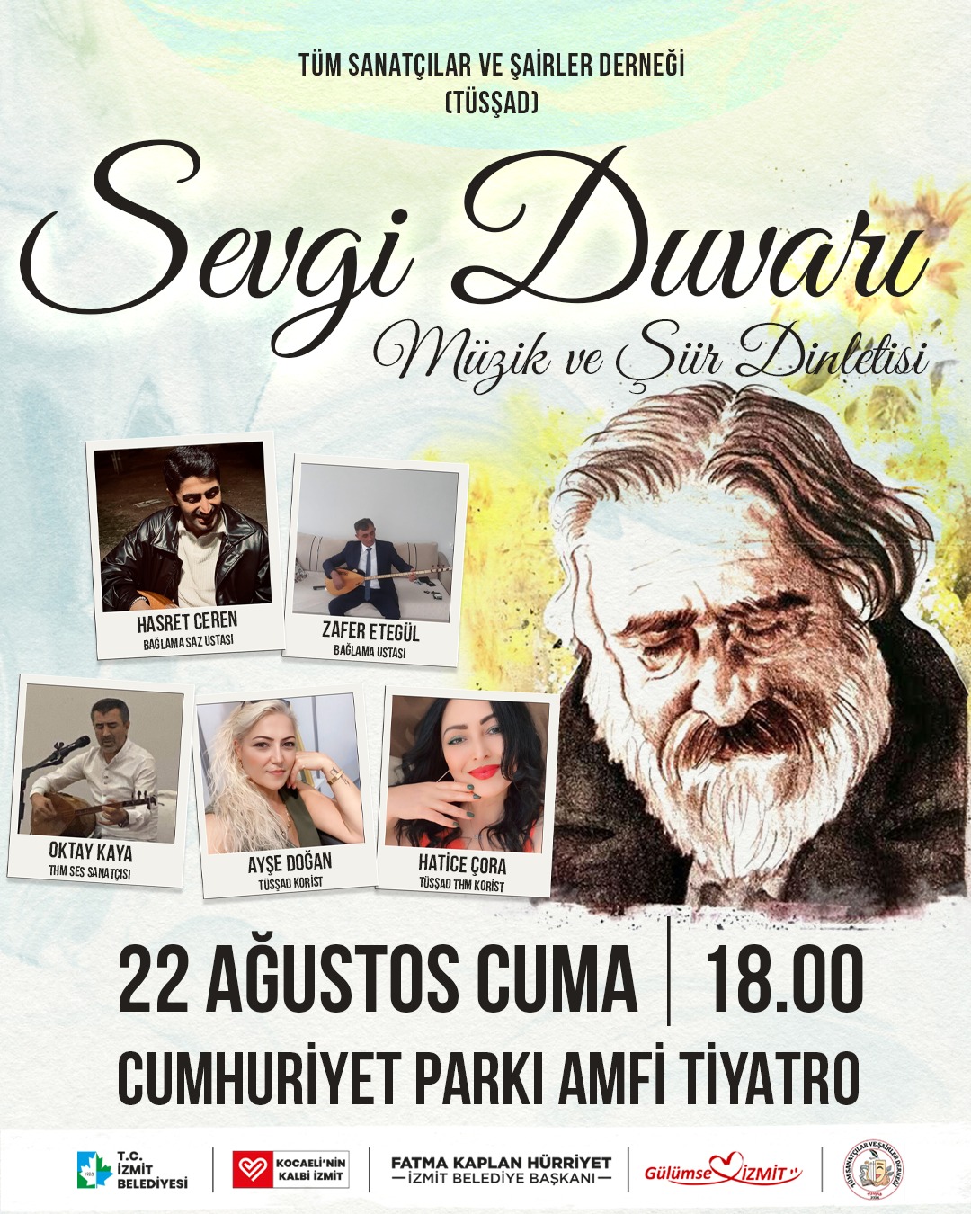 İzmit Belediyesi katkılarıyla, Tüm Sanatçılar ve Şairler Derneği (TÜSŞAD) tarafından usta şair Can Yücel anısına 22 Ağustos’ta Cumhuriyet Parkı Amfi Tiyatro’da “Sevgi Duvarı” adlı müzik ve şiir dinletisi düzenlenecek