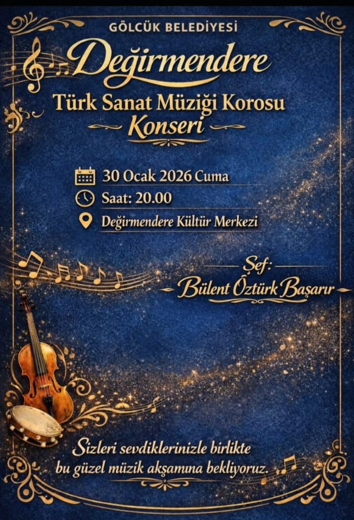 Koro, yarın akşam 30 Ocak 2026 Cuma günü saat 20.00’de Değirmendere Kültür Merkezi’nde sahne alacak. Türk sanat müziğinin seçkin eserlerinin seslendirileceği konser, müzikseverlere keyifli bir akşam yaşatacak.Şef Bülent Öztürk Başarır yönetiminde gerçekleştirilecek konserin, 15 şarkının yer aldığı geniş bir repertuvarla dinleyicilerin beğenisine sunulacak.
