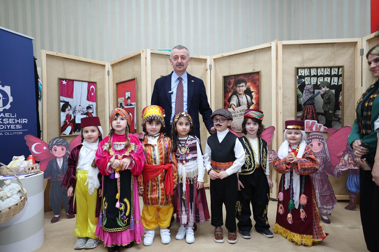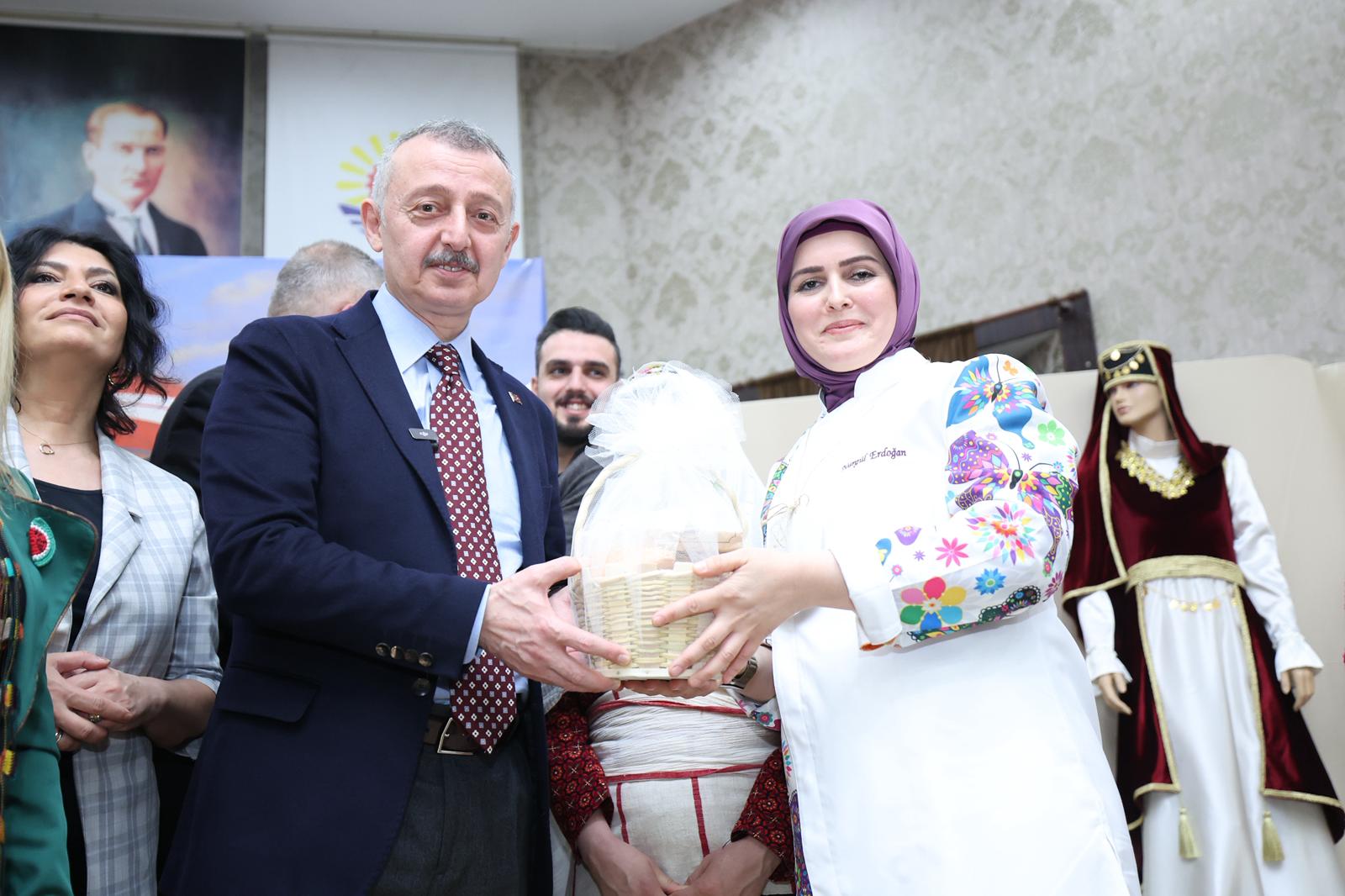 Gölcük Belediye Başkanı Ali Yıldırım Sezer ise konuşmasında, Kocaeli genelinde çok önemli projeler hayata geçiren Başkan Büyükakın’a teşekkür etti. Anne Şehir kursiyerlerinden Aysel Zengin, “Bizi yeniden hayata bağladınız. Bize çok şey kattınız” diyerek, KO-MEK kurslarının önemine vurgu yaptı. Pastacılık eğitimi gören Ebru Ünal da arkadaşları adına Başkan Büyükakın’a teşekkürlerini sundu. Konuşmalardan sonra Başkan Büyükakın, yakında düğünü olacak nişanlı bir kursiyere KO-MEK bohçası hediye etti. Ardından da çocuklarla birlikte serginin açılış kurdelesini kesti. Sergideki tüm stantları ziyaret eden Büyükakın, eserler hakkında kursiyerlerden bilgi aldı.