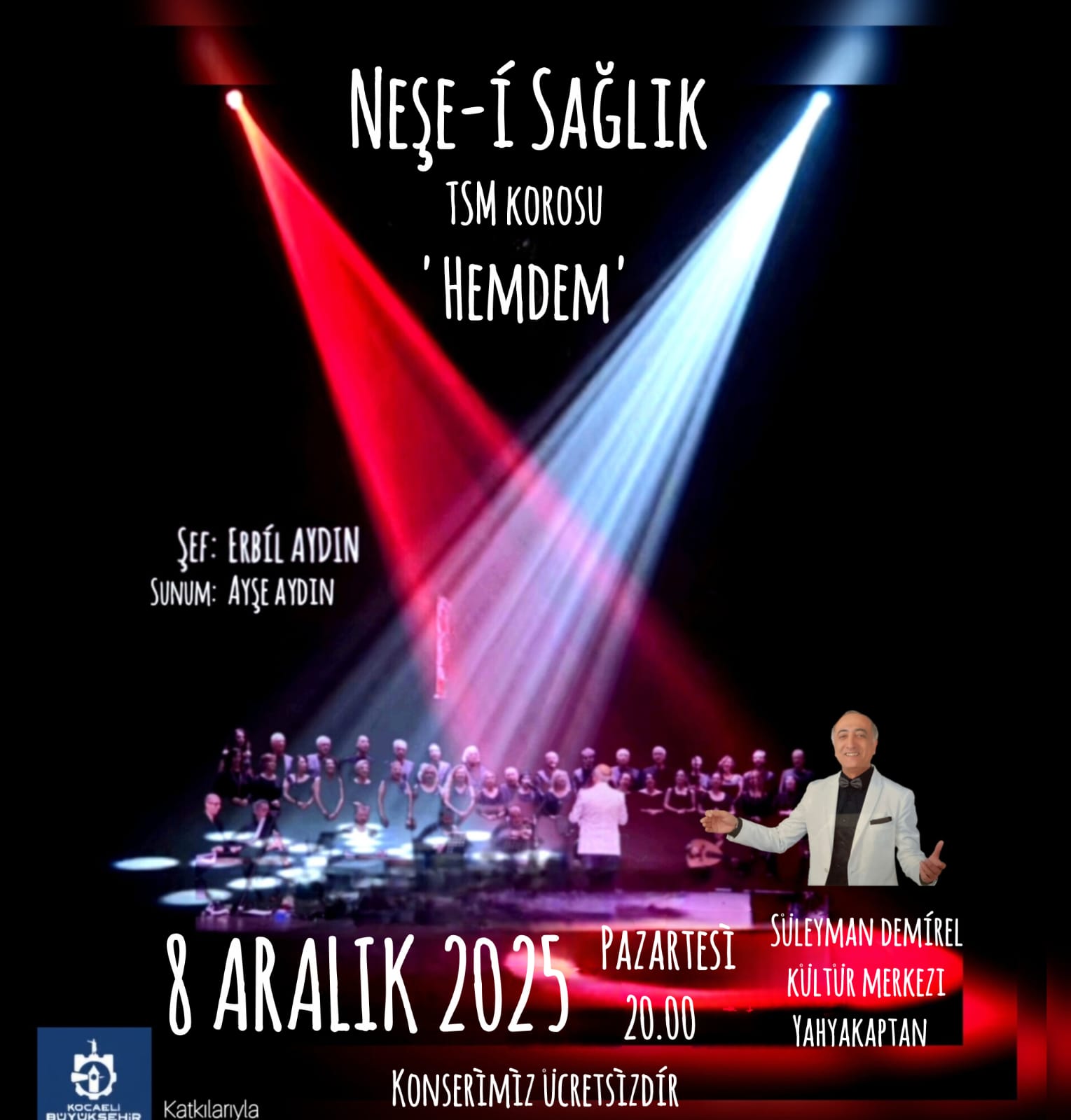 Diş hekimi Nilgün Özyuva ve arkadaşları tarafından kurulan, kentin en renkli ve özel korolarından biri olan NEŞE-İ SAĞLIK TSM Korosu, 8 Aralık 2025 Pazartesi günü saat 20.00’de Yahya Kaptan Süleyman Demirel Kültür Merkezinde müzikseverlerle buluşacak.