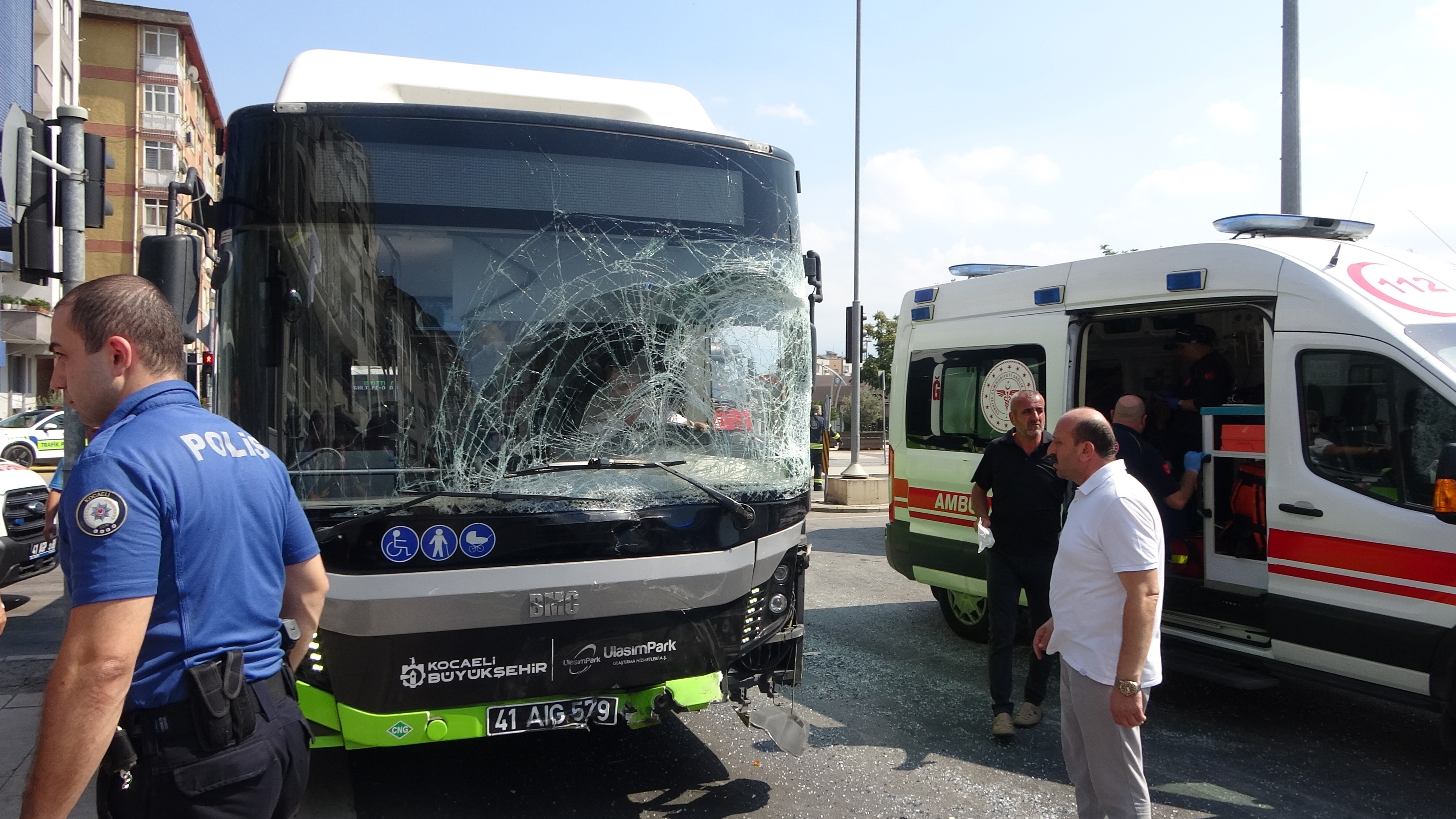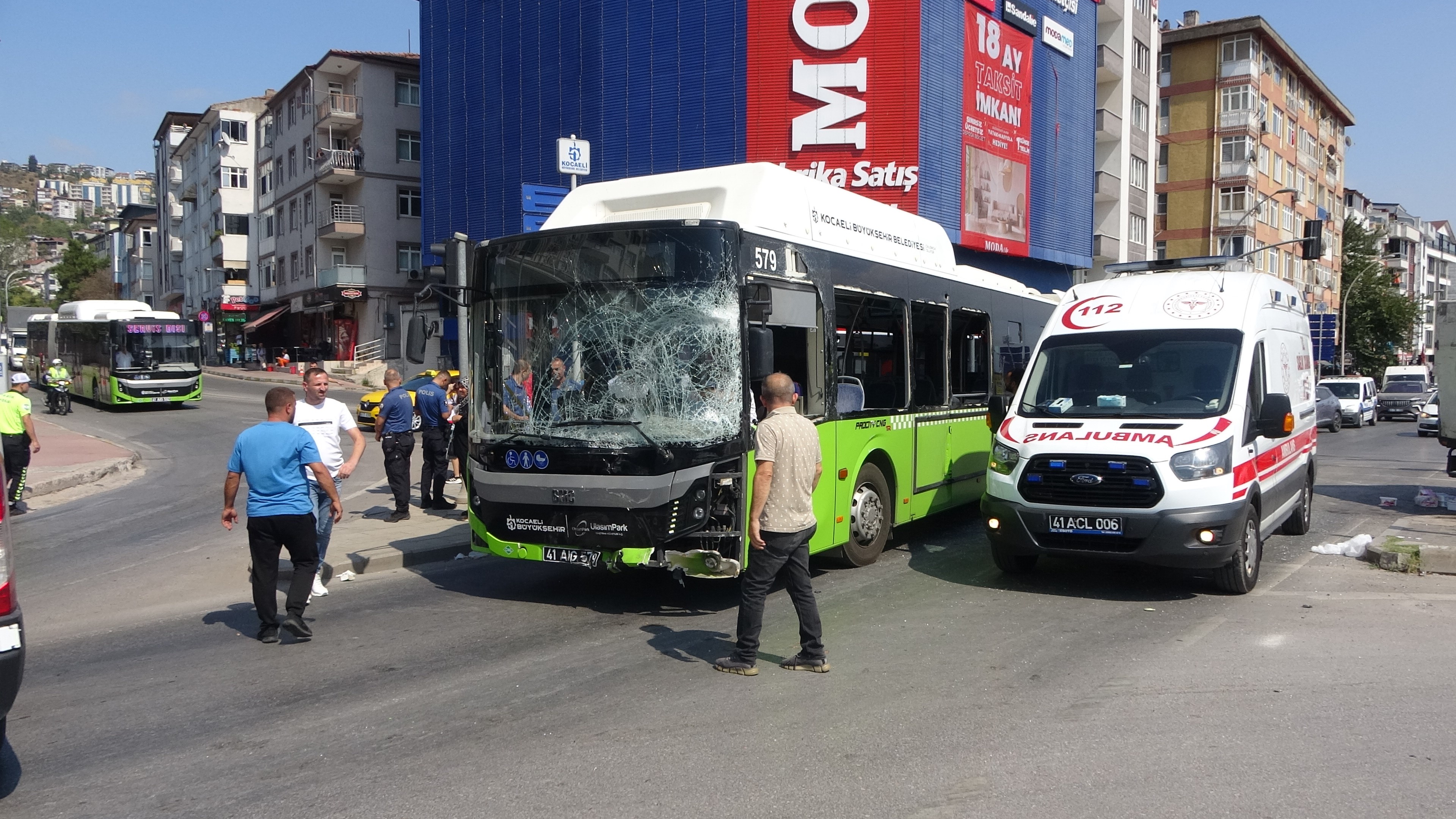 Kocaeli D100 yan yolda dondurma yüklü kamyonetle, yolcu otobüsünün kavşakta çarpışması neticesinde biri çocuk 6 kişi yaralandı. Kazanın şiddetiyle otobüsün camları patlarken, yolcular korku dolu anlar yaşadı.
