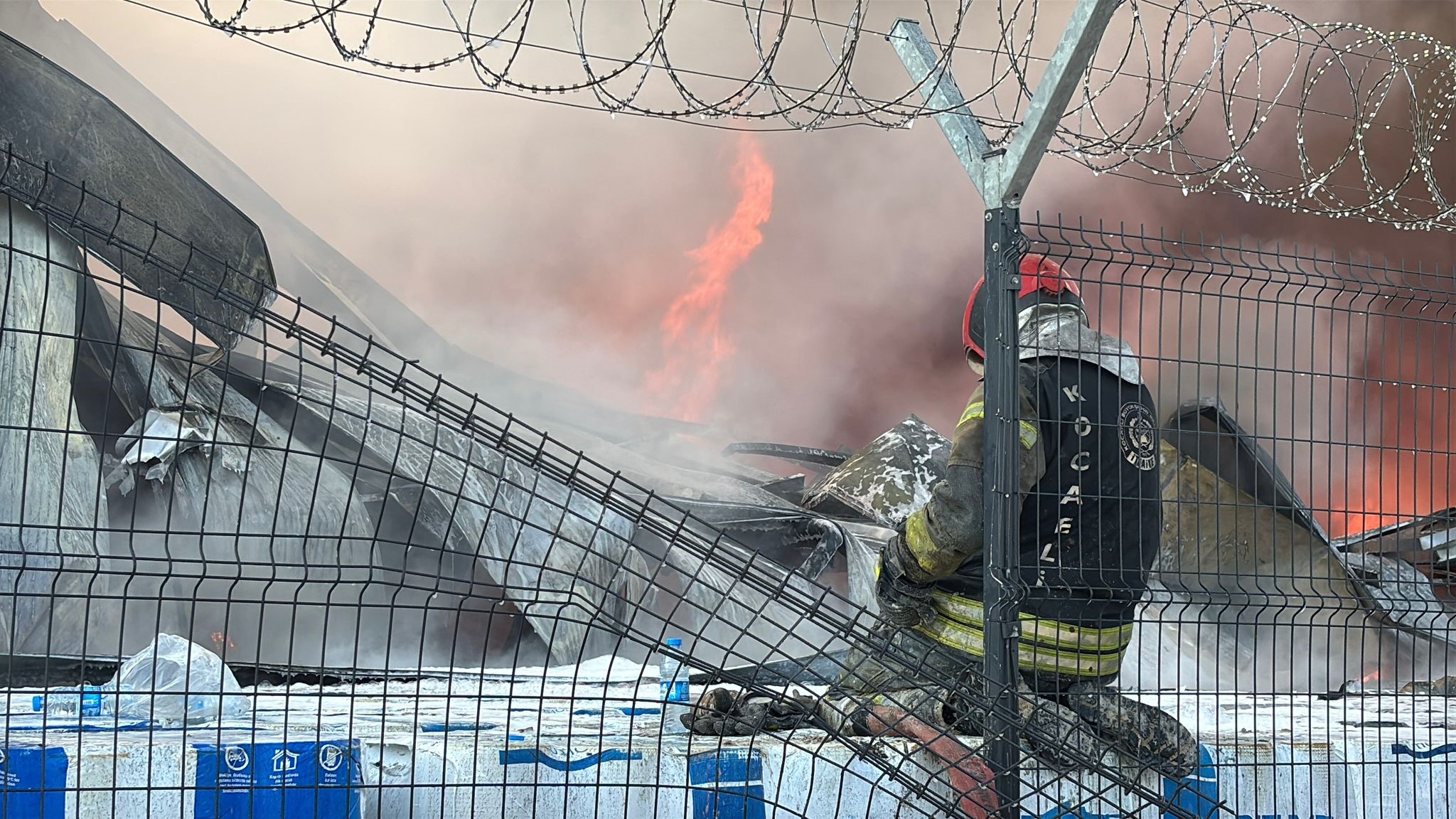 Kocaeli'nin Başiskele ilçesindeki lojistik deposunda 3 saattir süren yangın, itfaiye ekiplerinin yoğun müdahalelerinin ardından kontrol altına alındı. Bir itfaiye erinin alevlerin karşısındaki yorgun anları ise görevin zorluğunu bir kez daha gözler önüne serdi.