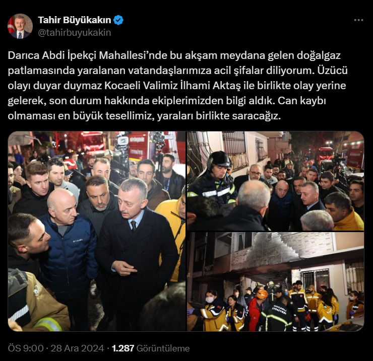 Kocaeli Büyükşehir Belediye Başkanı Tahir Büyükakın ve Kocaeli Valisi İlhami Aktaş olay yerine gelerek durum hakkında ekiplerden bilgi aldı. Büyükakın, sosyal medya hesabından yaptığı açıklamada, “Üzücü olayı duyar duymaz Kocaeli Valimiz İlhami Aktaş ile birlikte olay yerine gelerek, son durum hakkında ekiplerimizden bilgi aldık. Can kaybı olmaması en büyük tesellimiz, yaraları birlikte saracağız,” ifadelerini kullandı. Olay yerine çok sayıda itfaiye, sağlık ve polis ekibi sevk edilirken, çevrede güvenlik önlemleri alındı.