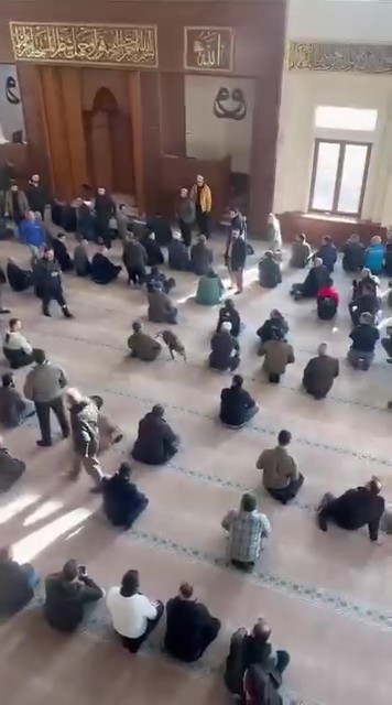 Olay, dün cuma namazı hazırlıklarının sürdüğü sırada meydana geldi. Tasmalı pitbull, açık kapıdan cami içerisine girdi. Köpeği fark eden cemaat, durumu görevlilere bildirirken, cami içinde kısa süreli hareketlilik yaşandı.
