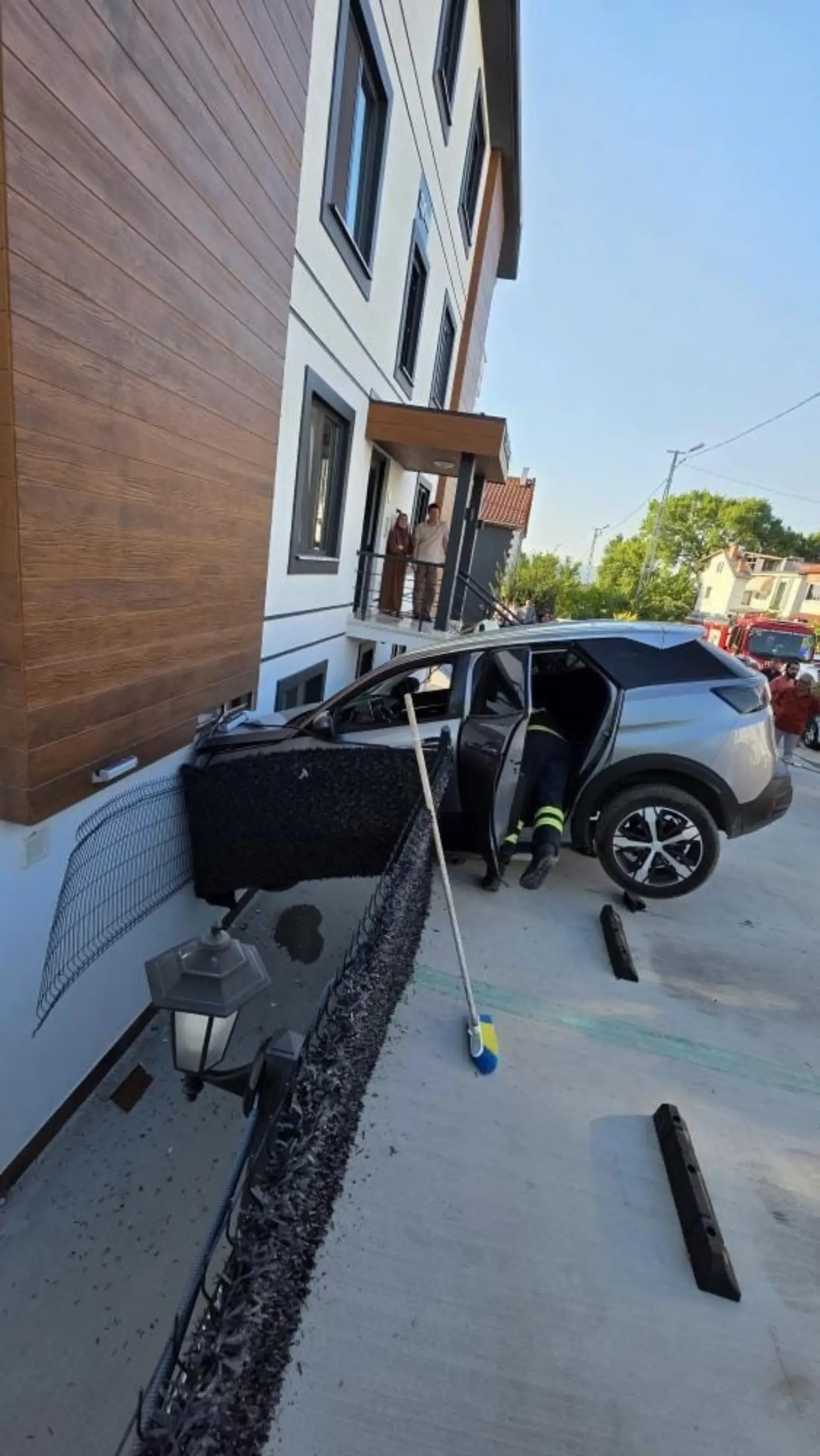 Kocaeli’nin Başiskele ilçesinde, direksiyon hakimiyetini kaybeden sürücünün kullandığı cip, ev ile duvar arasında sıkışarak asılı kaldı.