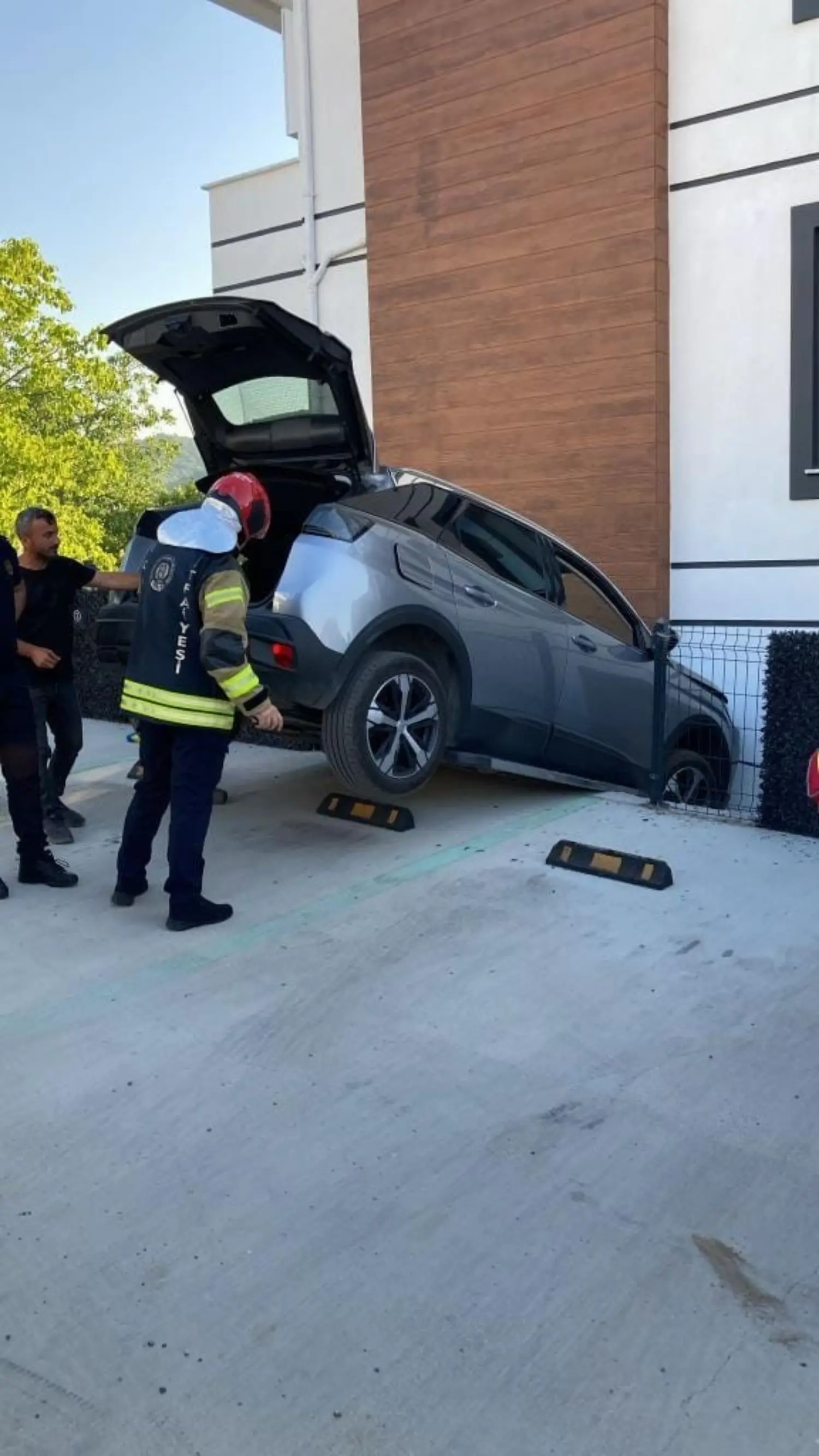 Kaza Seymen mahallesinde meydana geldi. Z.A. idaresindeki cip, sürücüsünün direksiyon hakimiyetini kaybetmesi neticesi kayarak binanın duvarına çarptı. Askıda kalan araç için olay yerine itfaiye ve sağlık ekipleri sevk edildi. Ekiplerin dikkatli çalışmasıyla araç bulunduğu yerden kurtarıldı, sürücü Z.A. ise araçtan çıkarıldı.