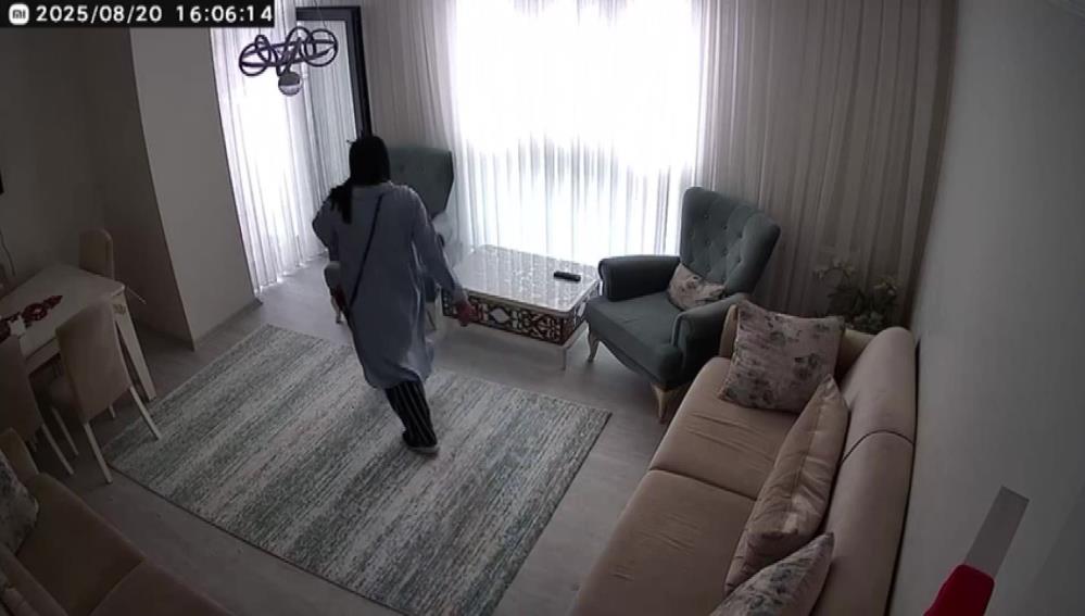 Kocaeli'de apartmana giren 3 kadından biri, kapıyı tıklatıp içeride kimse olmadığını anlayınca, adeta kendi eviymiş gibi ayakkabılarıyla daireye girdi. Rahat tavırlarla odaları dolaşan kadın değerli eşya ararken, diğer ikisi kapıda gözcülük yaptı. Güvenlik kamerasını fark eden şüpheli panikle yüzünü eşarpla gizledi. O anlar saniye saniye güvenlik kameralarına yansıdı.