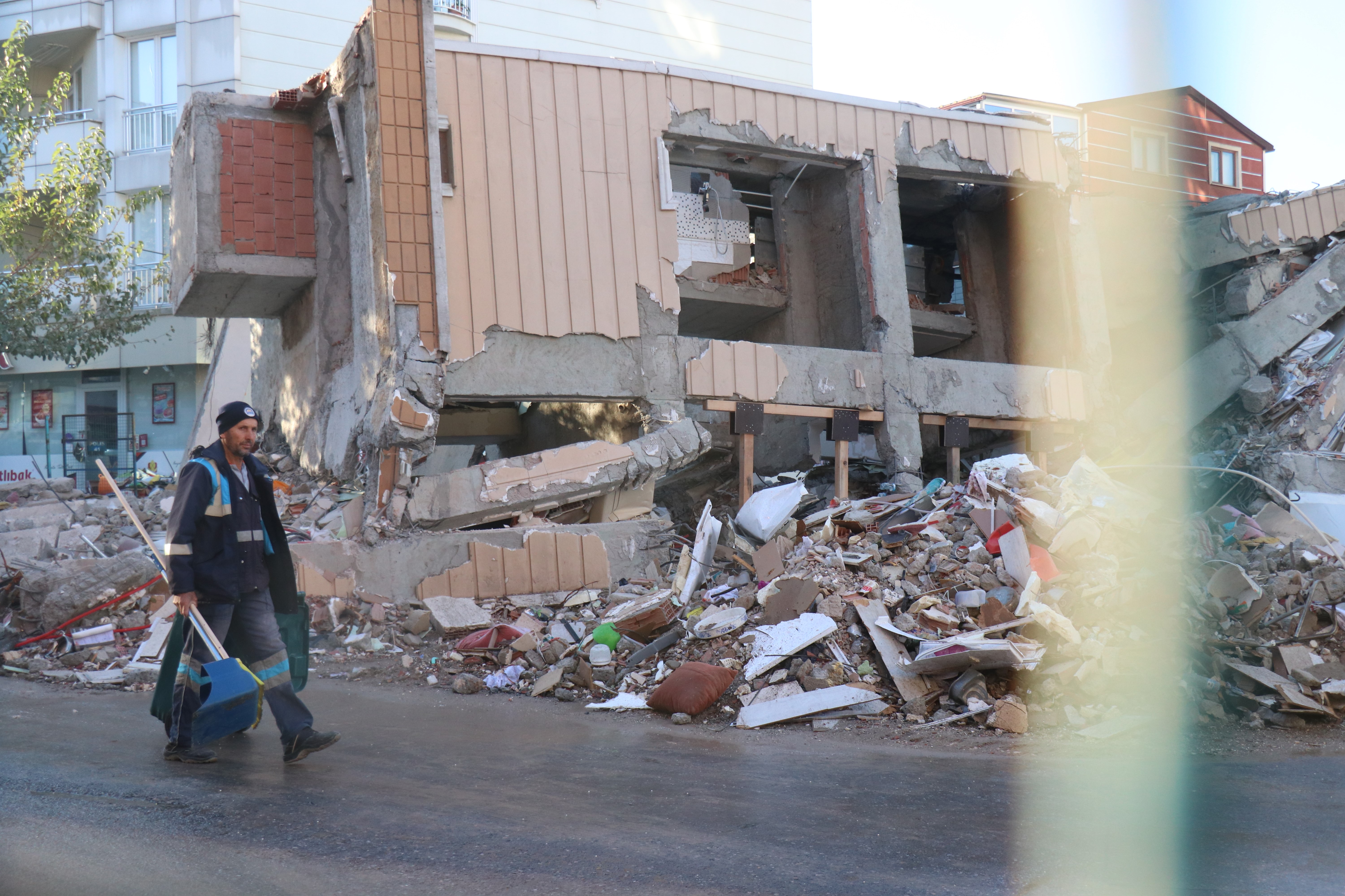 Yaşanan elim olayın ikinci gününde ise çalışmalar sabahın ilk ışıklarıyla devam etti. Tedbir gayesiyle 12 binanın boşaltıldığı bölgede ilçe belediyesine bağlı temizlik işçileri yollarda ıslatma çalışması ve bölge temizliği gerçekleştirildi. Geniş güvenlik önlemlerinin alındığı alanda savcılık incelemesinin ardından enkaz kaldırma çalışmalarının yapılması bekleniyor. Aynı ailede 4 kişiye mezar olan bina ise havadan görüntülendi.