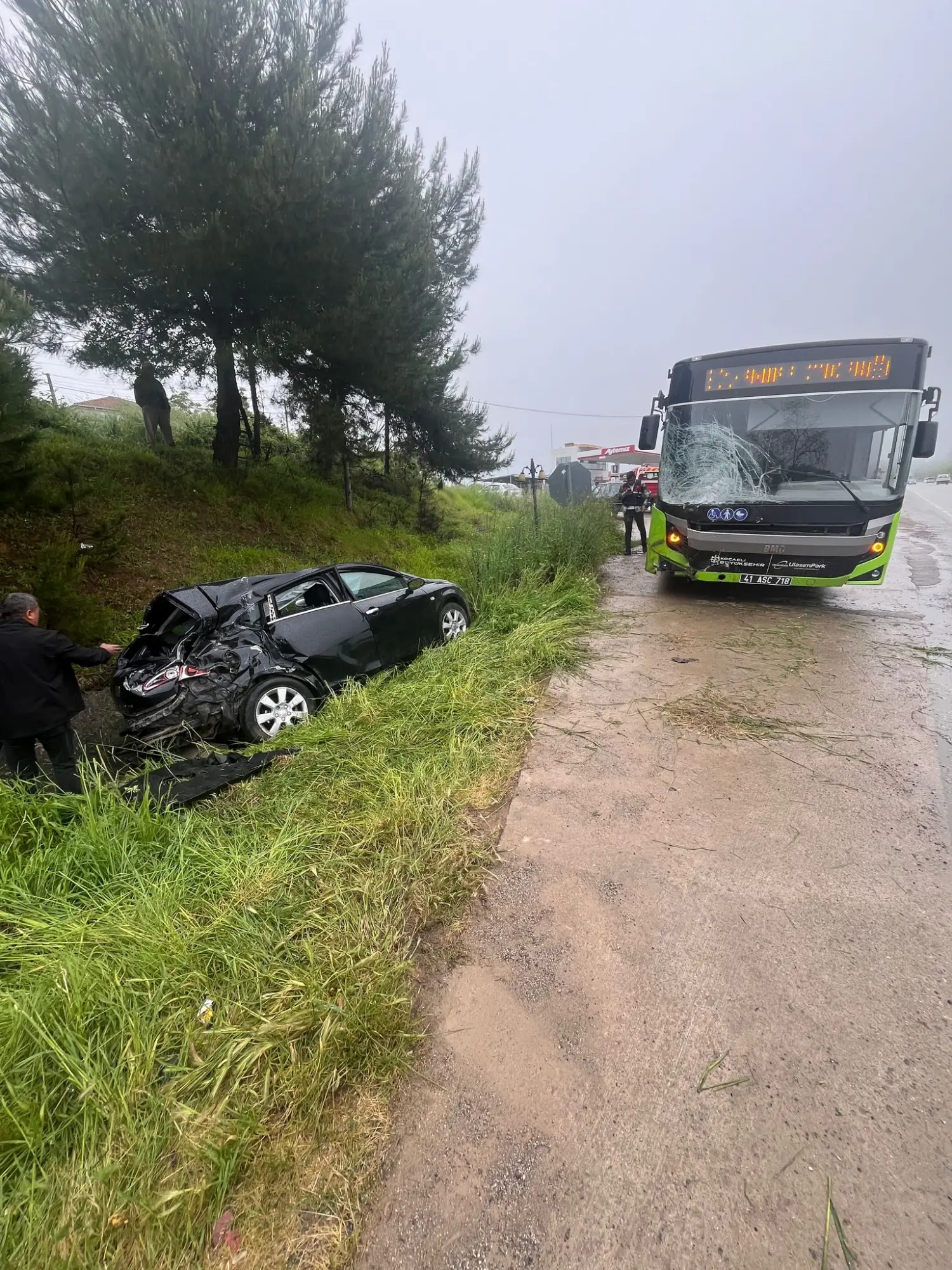 Olay, öğleden sonra Kandıra Çakırcaali mevkiinde meydana geldi. İddiaya göre, otomobil sürücüsü, karşı yönden gelen belediye otobüsünü sollamak isterken direksiyon hakimiyetini kaybetti ve otobüse çarptı. Çarpmanın etkisiyle otomobilin ön kısmı büyük hasar gördü.