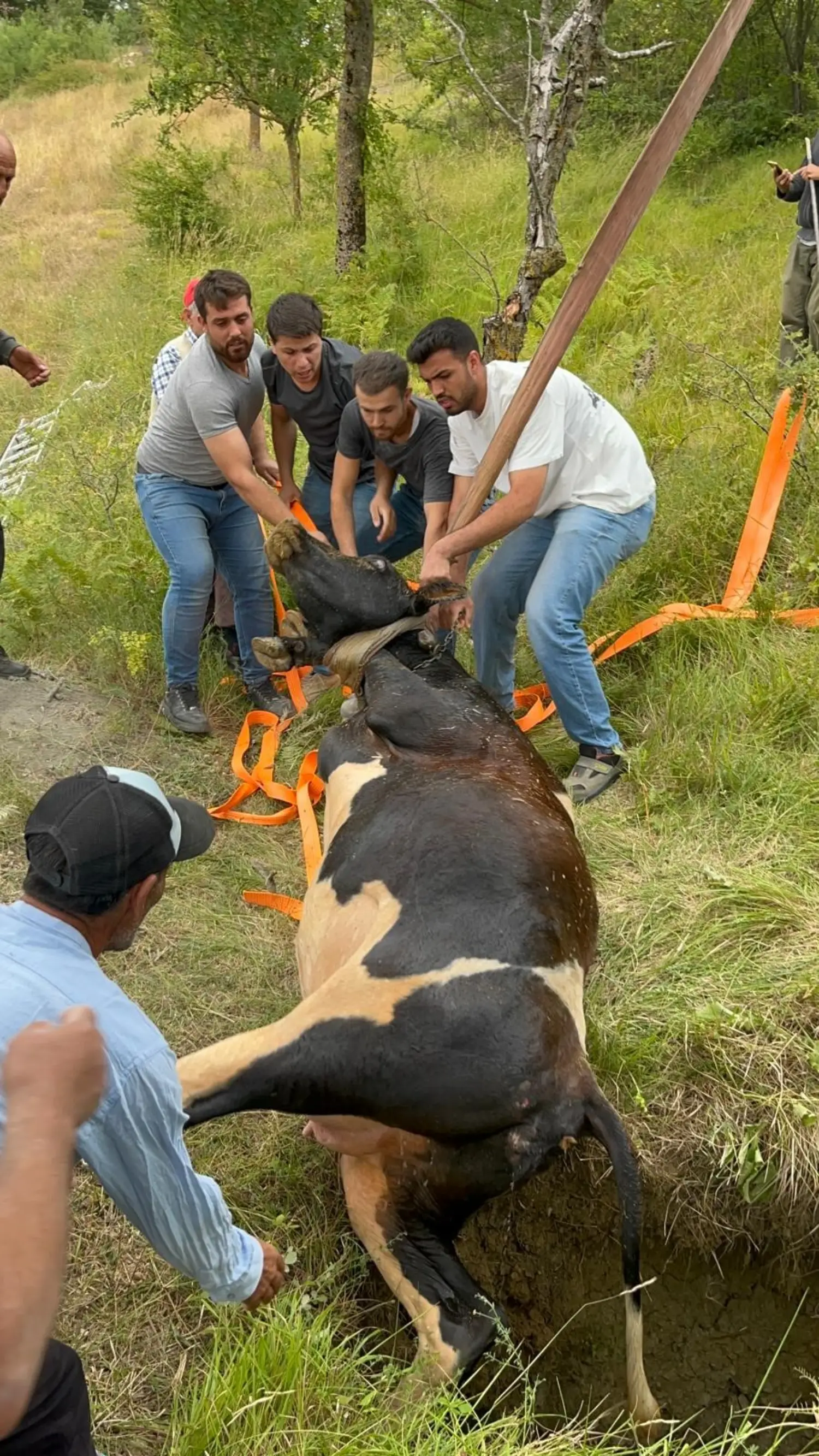 Yaşananları anlatan Cevdet Yılmaz, "Defineciler burayı kazmış, üstünü de kapatmamışlar. Benim ineğim oraya düşmüştü. Sağ olsunlar, Kocaeli itfaiyesine teşekkür ederiz. İneği çıkardılar, var olsunlar. Hayvanım 5 saattir mahsurdu. İtfaiye ekipleri yaklaşık 3 saat uğraştı" dedi.