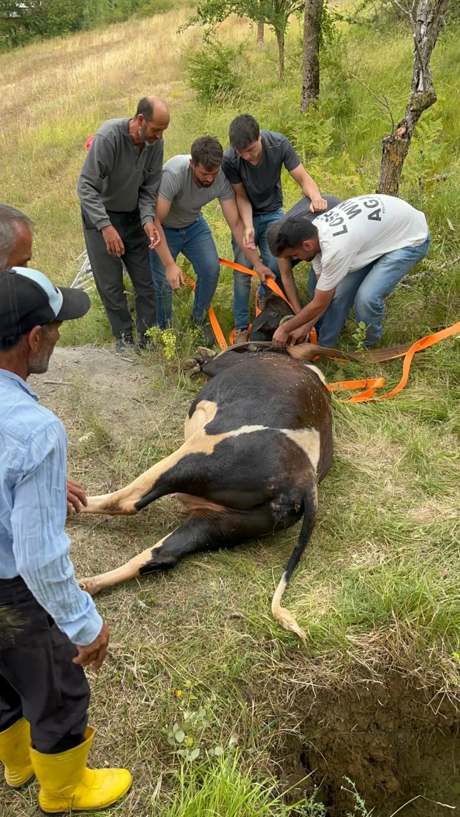 Cevdet Yılmaz'ın oğlu Abdullah Yıldız ise "Hayvan, definecilerin kazdığı 5 metrelik kuyuya düştü. İtfaiye erlerimizi çağırdık. Allah razı olsun, geldiler. Köylülerin de yardımıyla hayvanı sağ salim kuyudan çıkardık. Saatlerce uğraştık ama kurtardık" diye konuştu.
