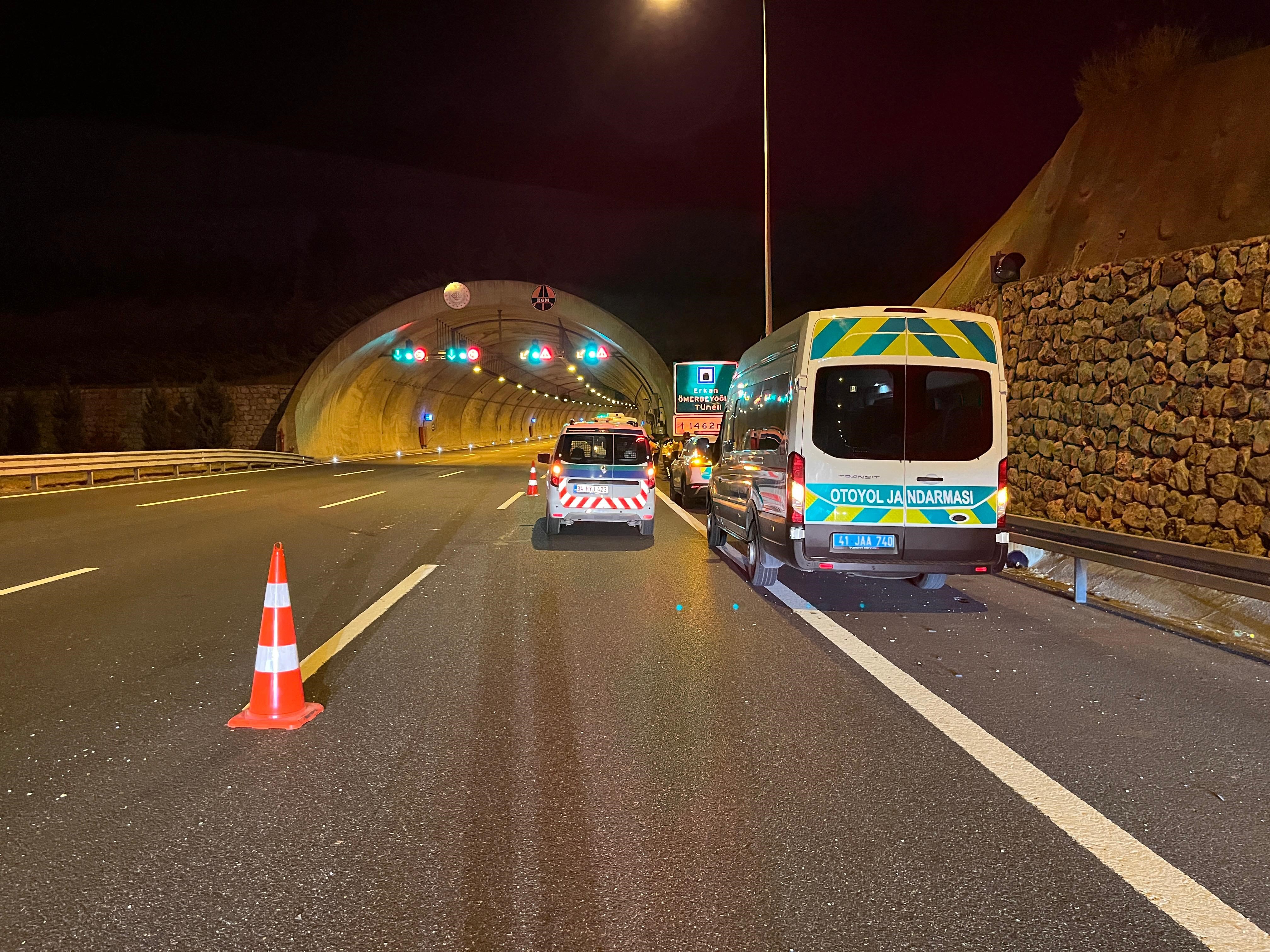 Öte yandan tünel içerisinde yürüyen yayayı fark eden Kuzey Marmara Otoyolu işletmesi ekiplerinin güvenlik amacıyla şahsı durdurmak istedikleri öğrenildi. Yayanın kaçması üzerine durumun otoyol jandarmasına bildirildiği, jandarma ekiplerinden de kaçan yayanın yolun karşısına geçmek isterken otomobilin çarptığı ileri sürüldü.