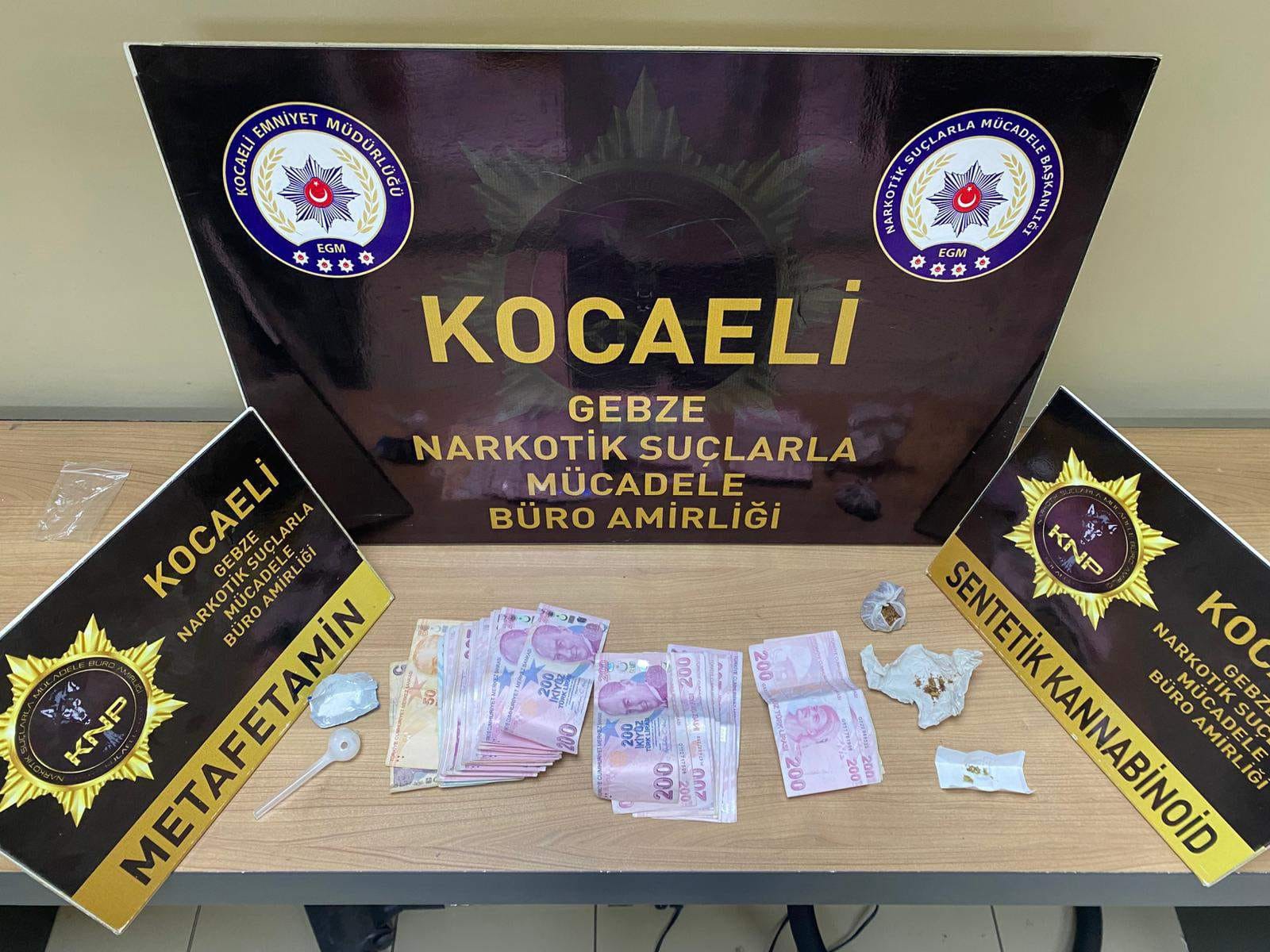 Kocaeli Emniyet Müdürlüğü Narkotik Suçlarla Mücadele Şube Müdürlüğü ekipleri tarafından Gebze ve İzmit'te gerçekleştirilen 3 ayrı operasyonda 7 şüpheli gözaltına alındı. Çalışmalarda 66 gram sentetik kannabinoid, 106 gram metamfetamin ve 16 bin 975 TL para ele geçirildi.