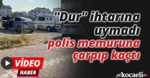 Kocaeli'de "dur" ihtarına uymayan sürücünün otomobiliyle çarptığı polis memuru yaralandı. Hastaneye kaldırılan polis memurunun sağlık durumunun iyi olduğu öğrenildi.